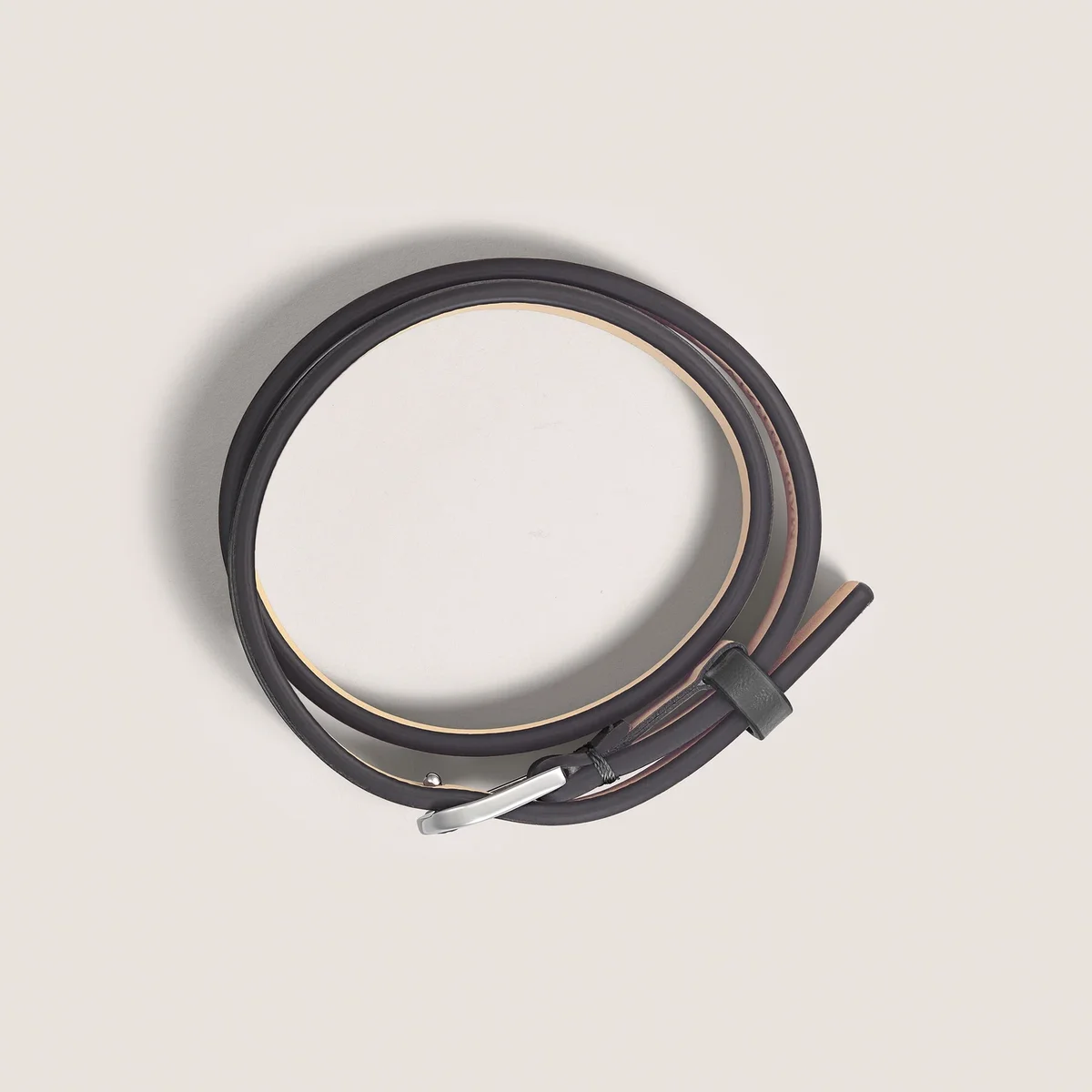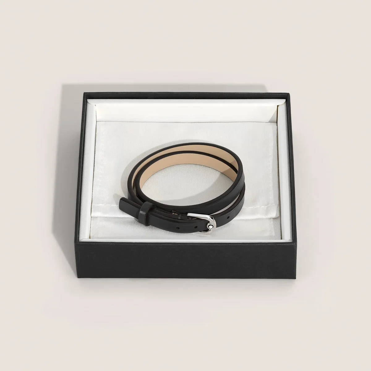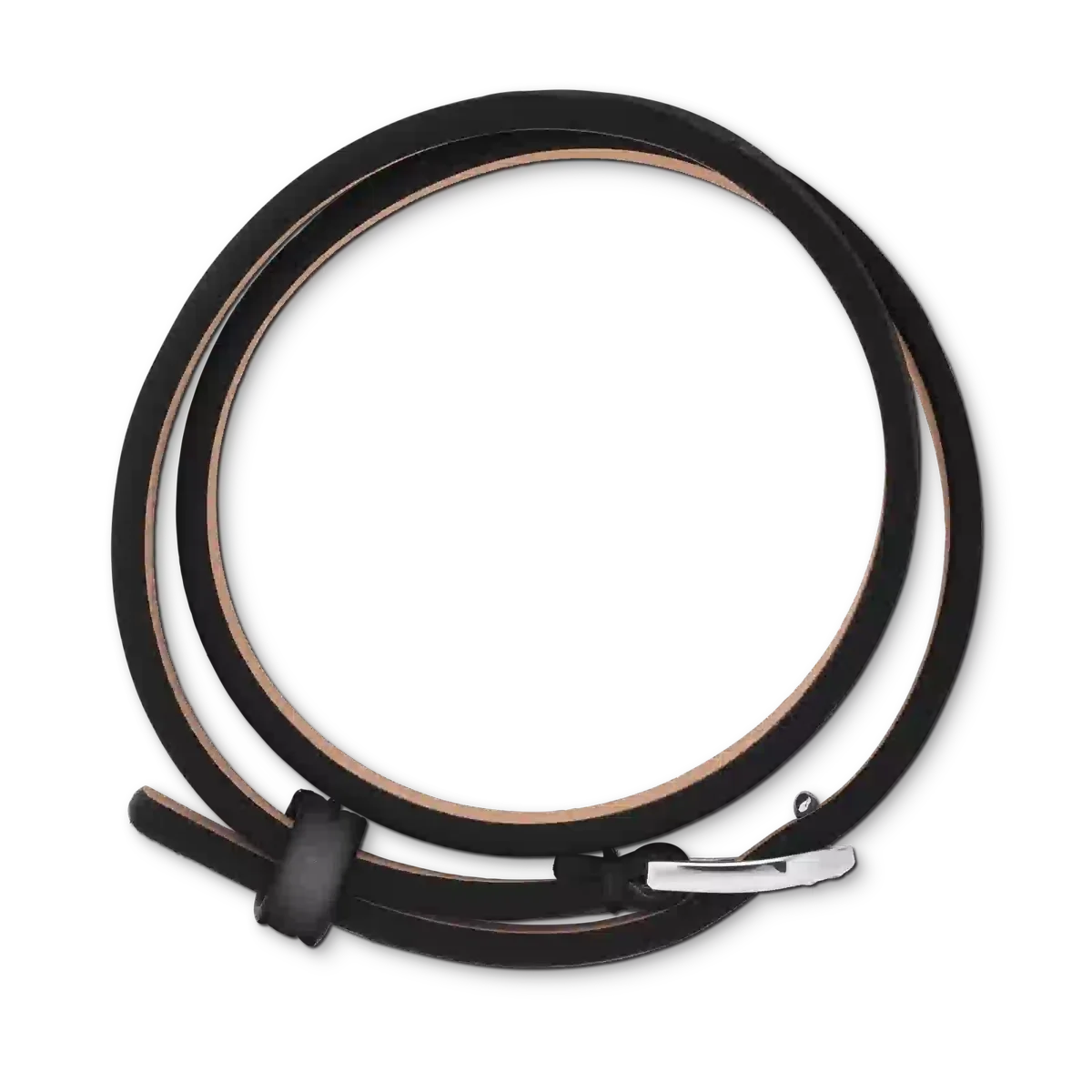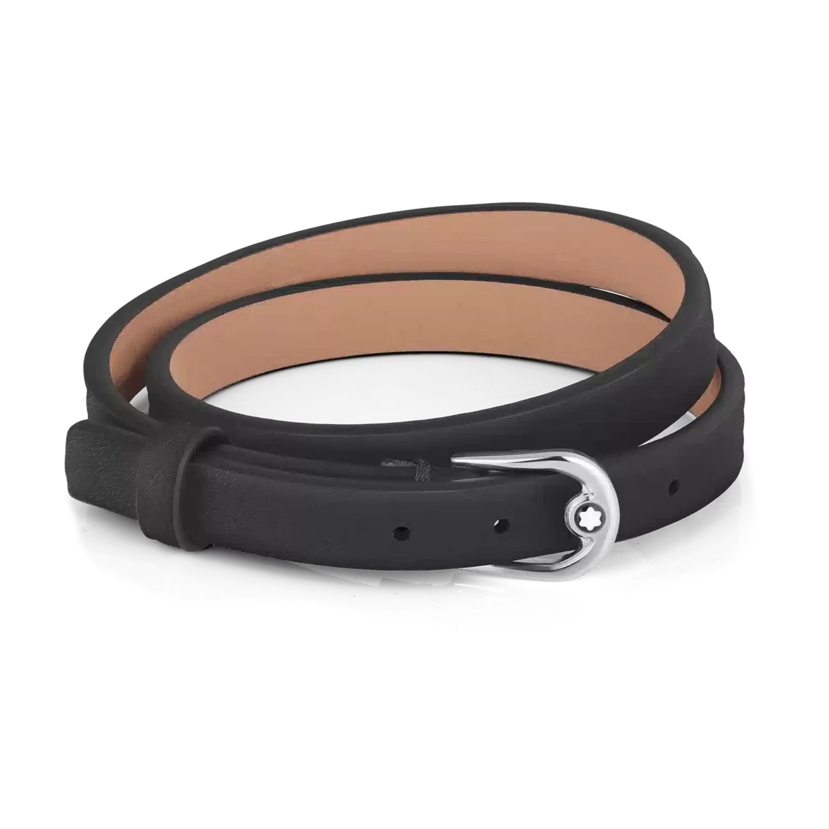 Questo raffinato gioiello si ispira all’eleganza di una cintura finemente lavorata, fondendo perfettamente funzionalità e bellezza per adornarti con un tocco di raffinatezza senza tempo. Il bracciale ha un cinturino in pelle di colore nero e chiusura in acciaio inossidabile. La misura è regolabile.