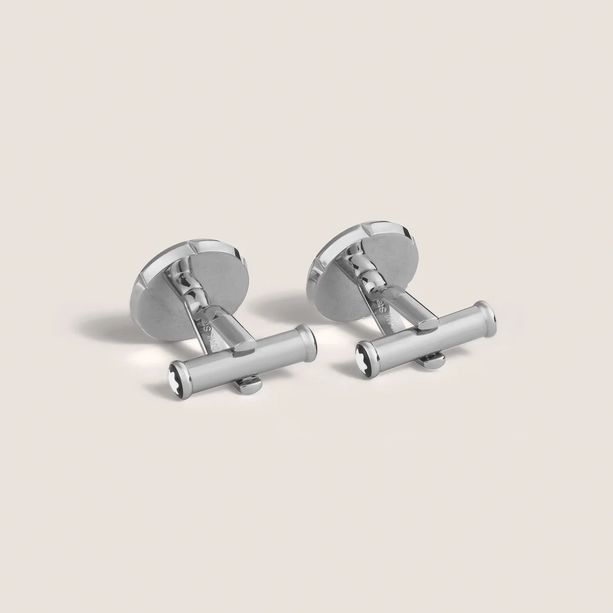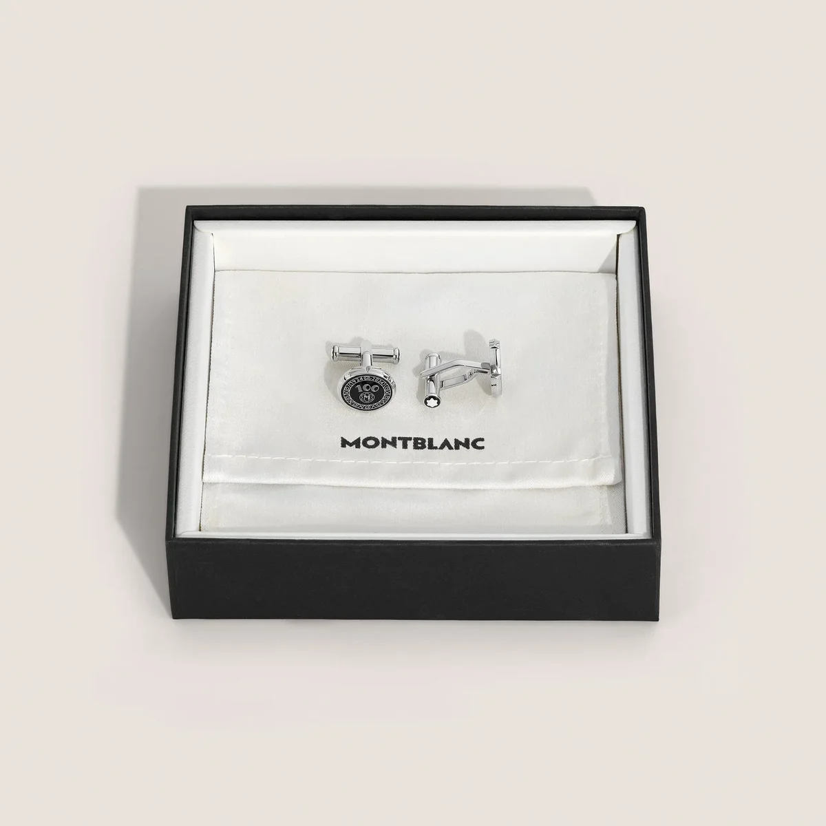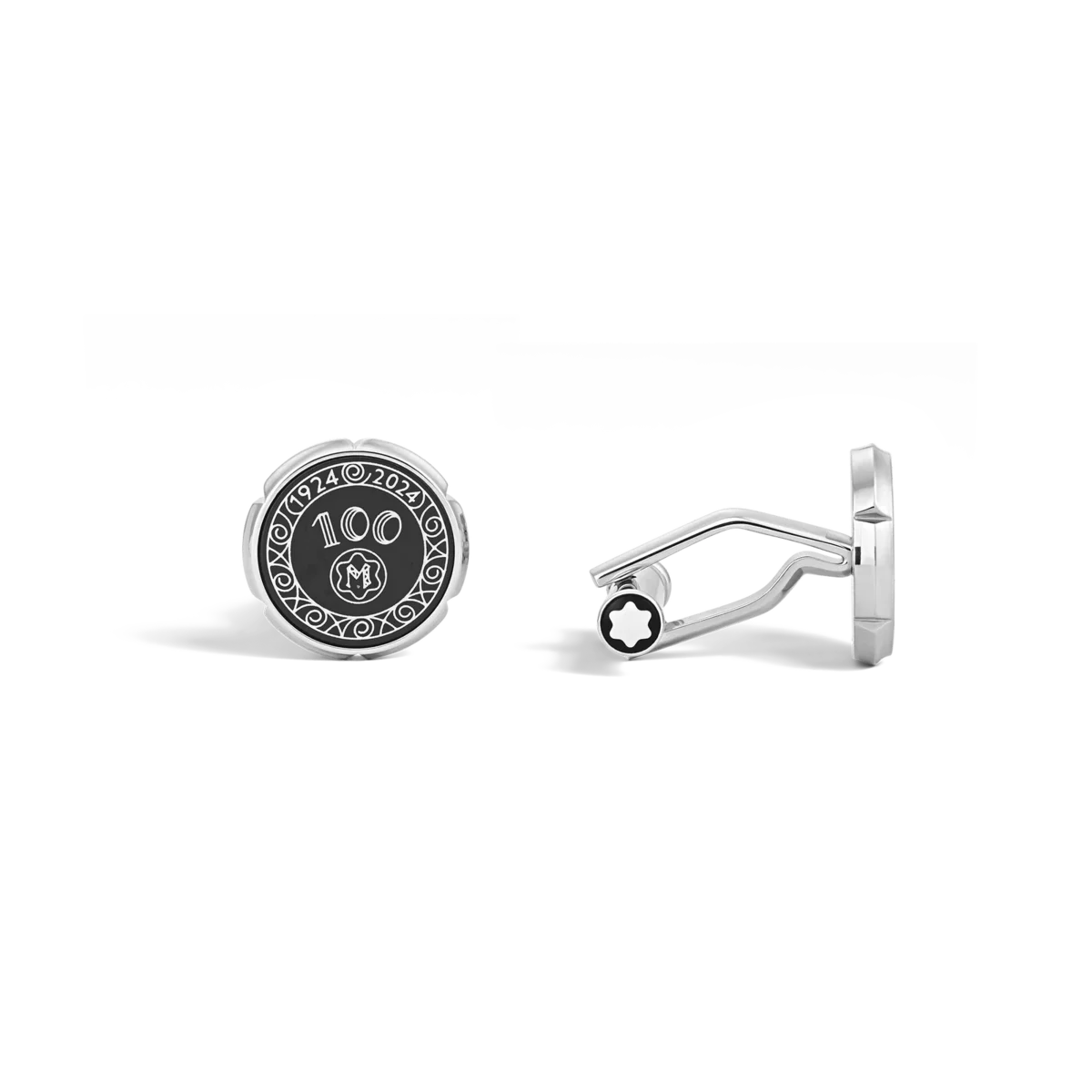 Gemelli in acciaio inossidabile con decorazione Meisterstück 100 anni in lacca nera intarsiata
