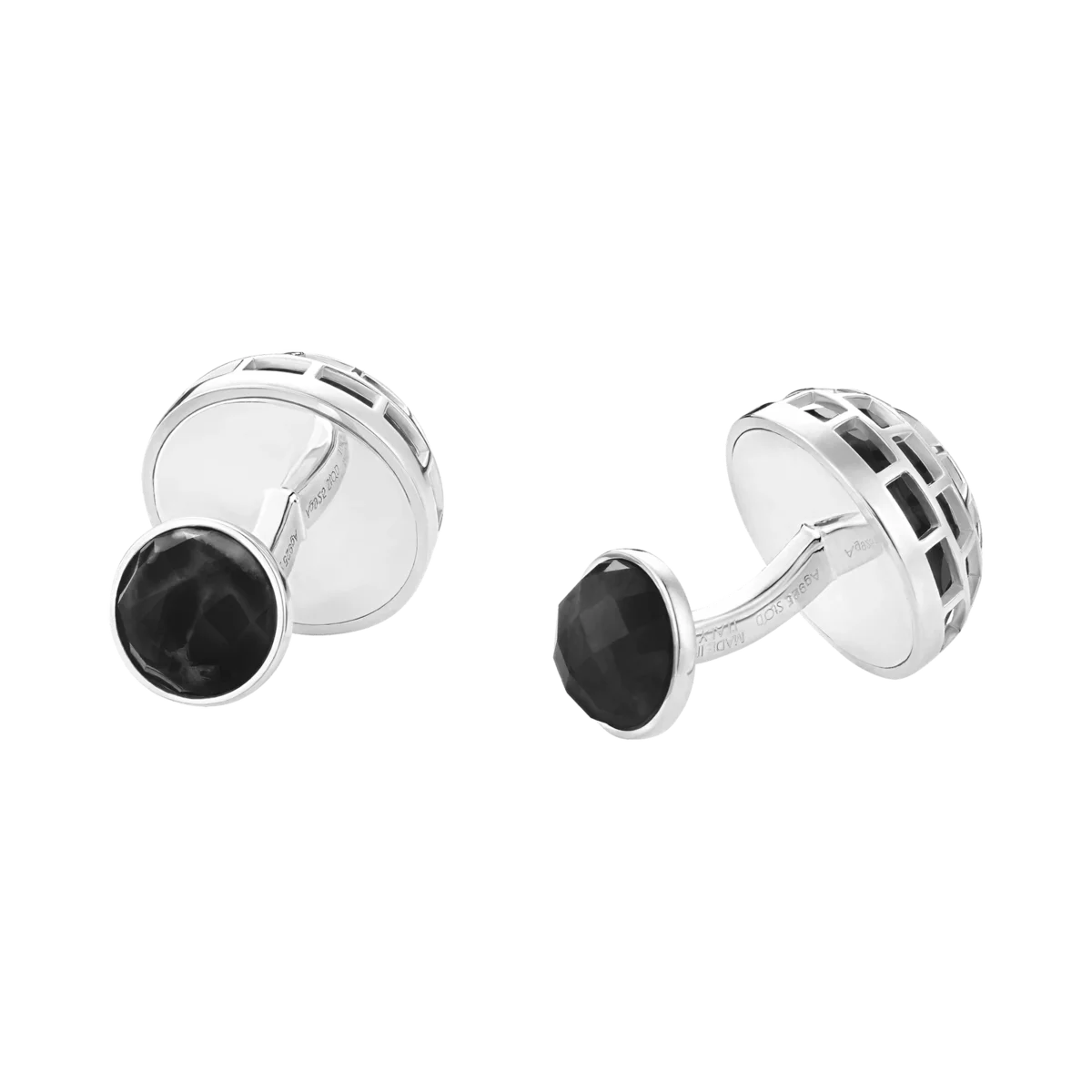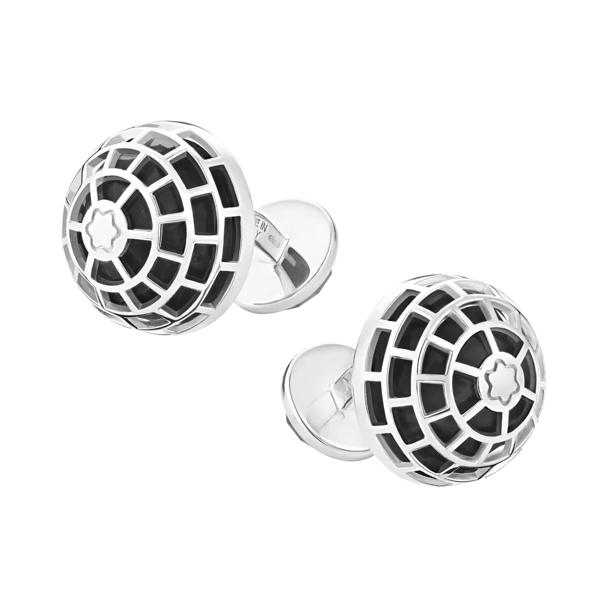 Questi gemelli Montblanc Meisterstück sono realizzati in argento con una pietra di onice nero racchiusa in una forma a cupola contemporanea e completata dall’iconico emblema Montblanc inciso. Anche la parte posteriore del gioiello è decorata con una pietra di onice rotonda.