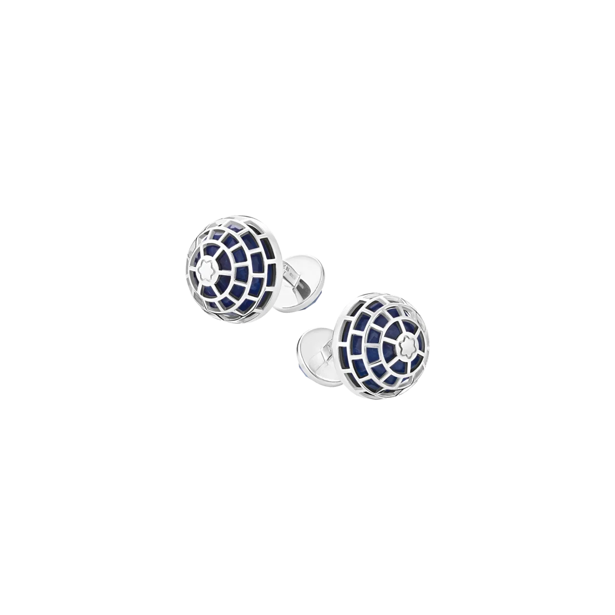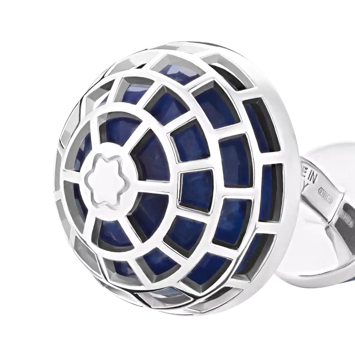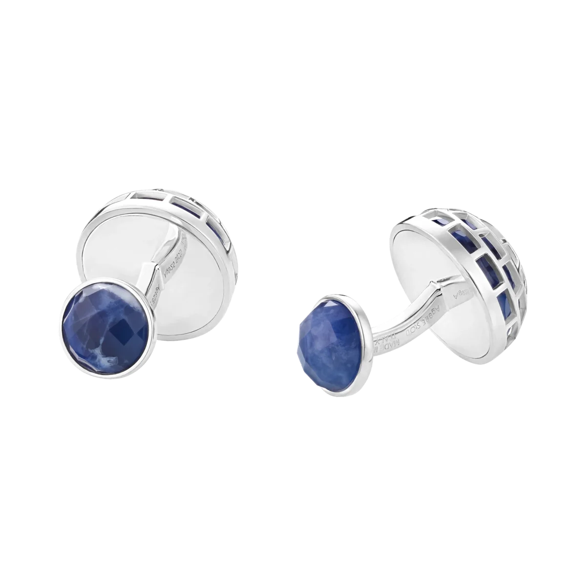 Questi gemelli Montblanc Meisterstück sono realizzati in argento con una pietra di sodalite blu racchiusa in una forma a cupola contemporanea e completata dall’iconico emblema Montblanc inciso. Anche la parte posteriore del gioiello è decorata con una pietra sodalite rotonda.