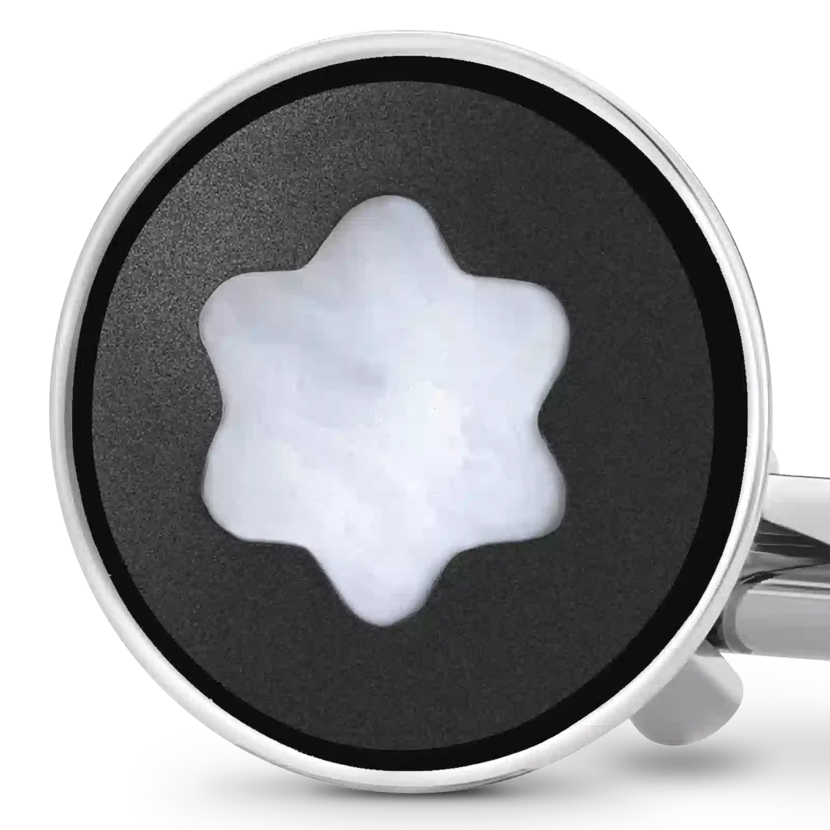 I gemelli rotondi Montblanc Star in acciaio inossidabile con intarsio in PVD nero ed emblema in madreperla con cappello da neve si ispirano ai codici della Maison. Una collezione che presenta l’emblema Montblanc in diverse interpretazioni.