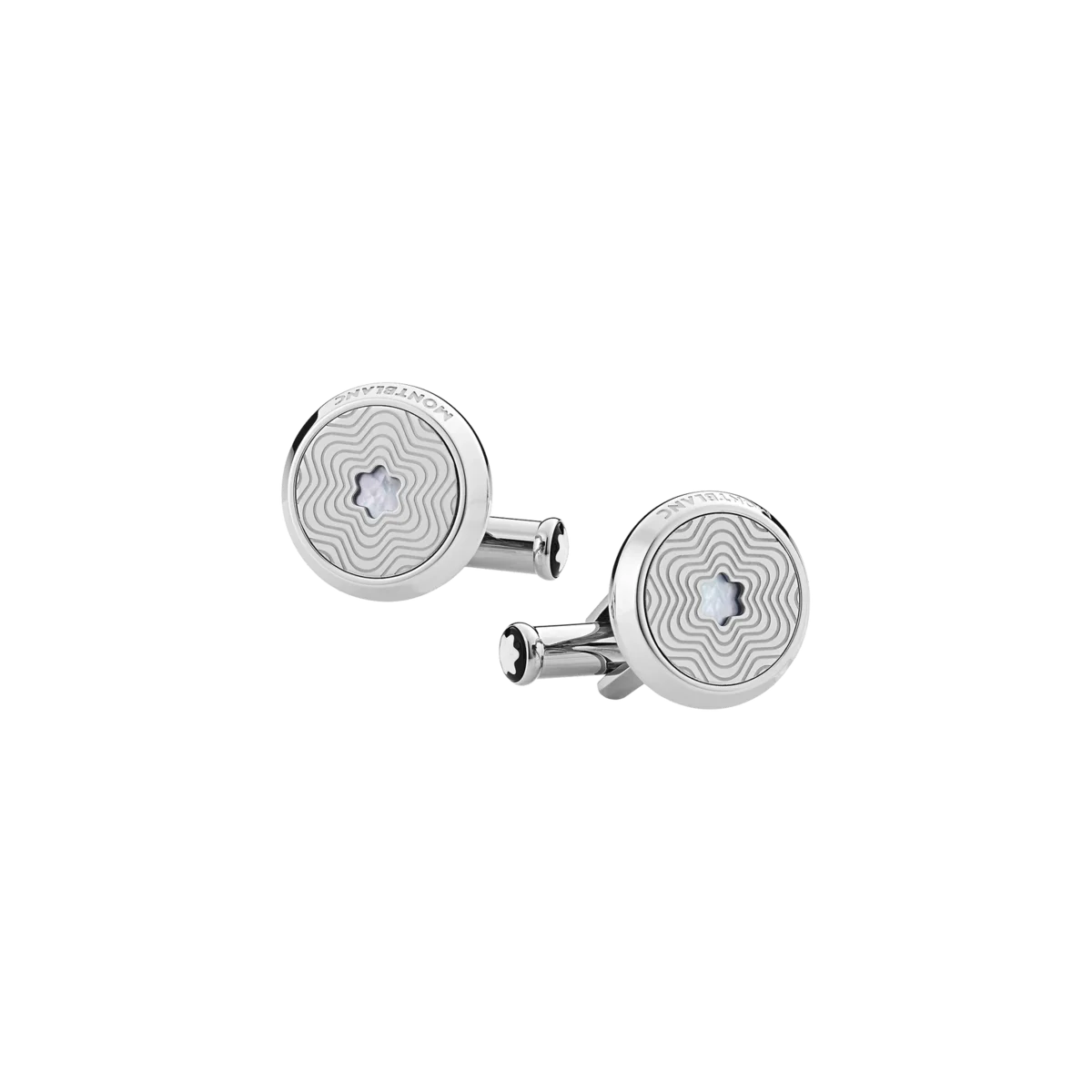 I gemelli rotondi Montblanc Star in acciaio inossidabile con motivo a stella esplosiva ed emblema in madreperla con cappello di neve si ispirano ai codici della Maison. Una collezione che presenta l’emblema Montblanc in diverse interpretazioni.