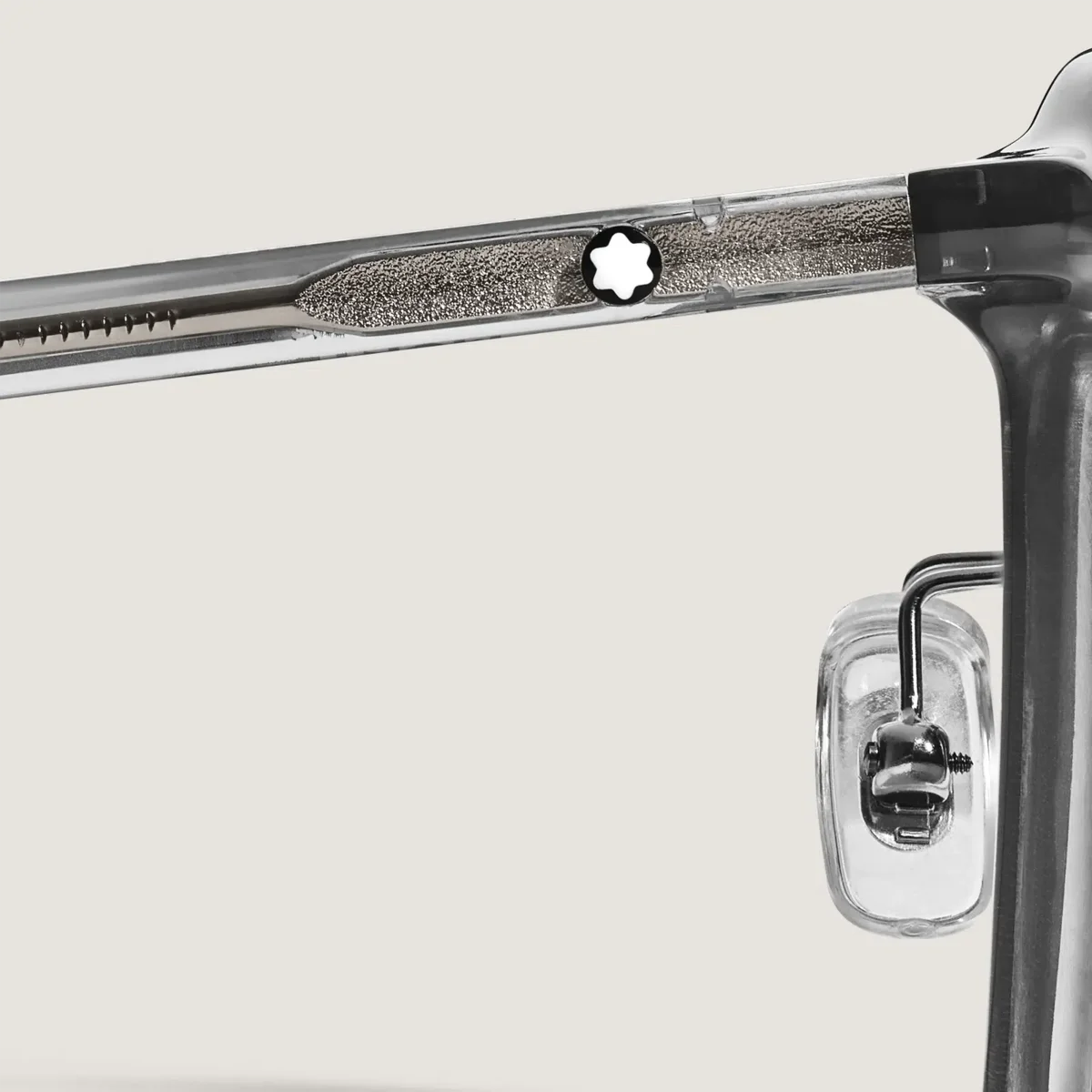 Questi occhiali da sole dal design ovale hanno una montatura iniettata di colore grigio e lenti blu. L’emblema Montblanc è incapsulato nel design delle aste. Il logo Montblanc è inciso al laser sulla lente sinistra degli occhiali da sole e il motivo antiscivolo è inciso al laser sul lato interno delle punte delle aste per aumentare il comfort.