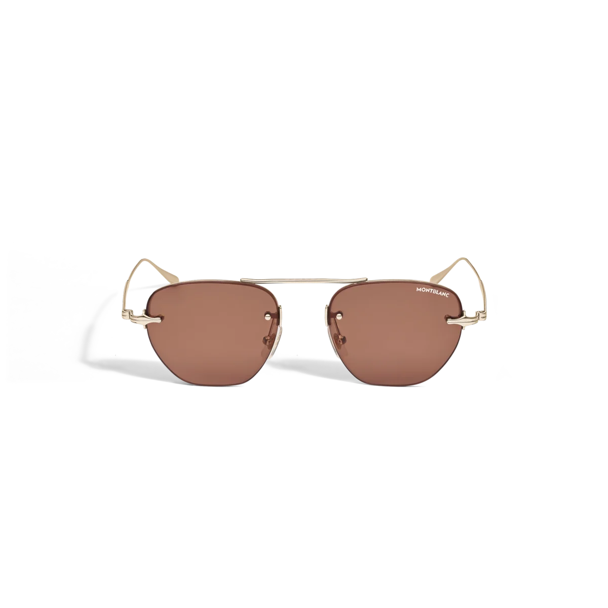 Questi occhiali da sole dal design rotondo hanno una montatura in metallo color oro e lenti marroni. Ispirati al design del pennino degli strumenti di scrittura, presentano un dettaglio decorativo sul design delle aste in metallo. Il logo Montblanc one line è inciso sul lato destro dell’asta, inoltre il logo è inciso al laser sulla lente sinistra e un dettaglio decorativo è inciso sulle estremità delle aste.