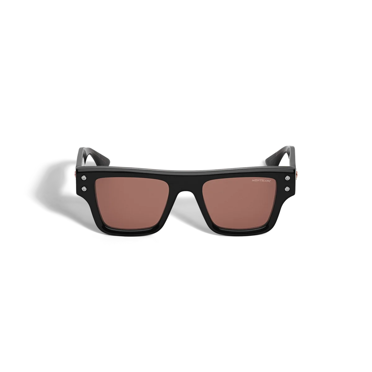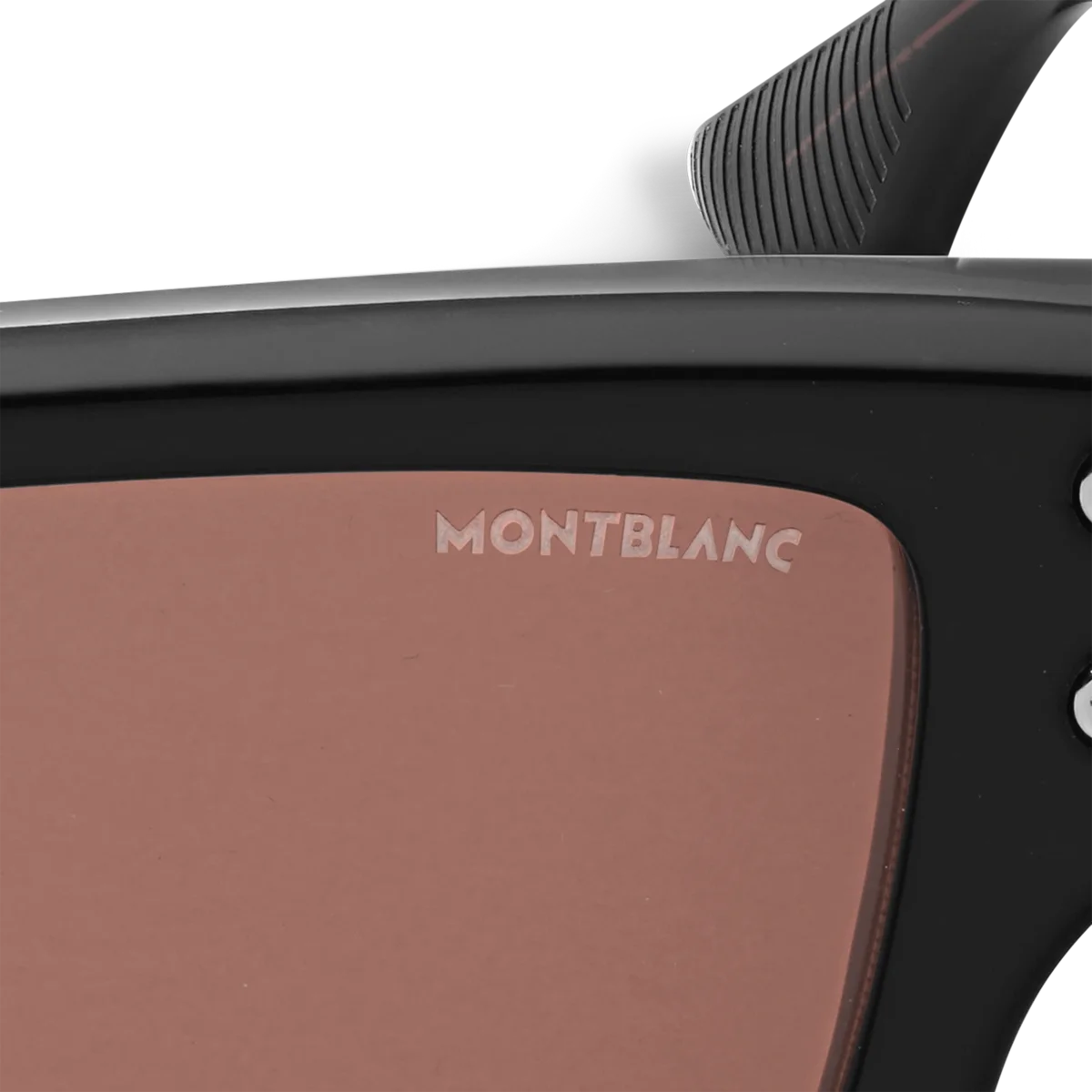 Questi occhiali da sole di forma rettangolare hanno una montatura in acetato di colore nero e lenti marroni. Una forma audace in acetato con un emblema colorato sulla tempia e il motivo Montblanc Extreme incorporato all’interno del design della tempia. Il logo Montblanc è inciso al laser sulla lente sinistra e il motivo antiscivolo è inciso al laser sul lato interno delle punte delle aste per aumentare il comfort.