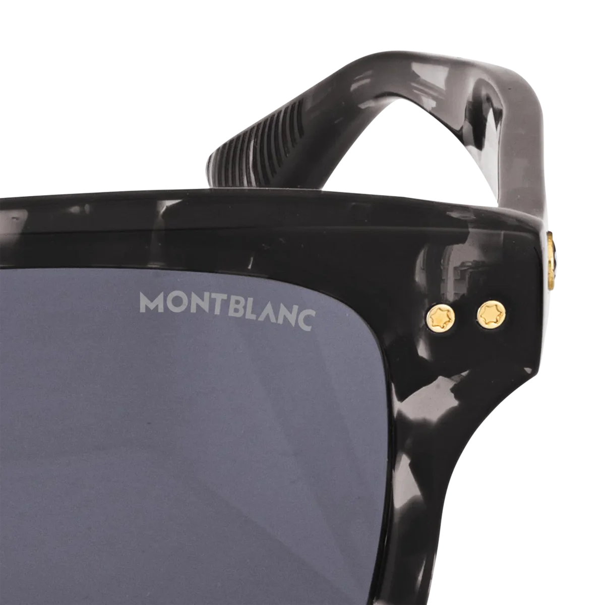 Scopri tutti i dettagli degli occhiali da sole rettangolari con montatura in acetato nero. Acquista online sul negozio ufficiale Montblanc.