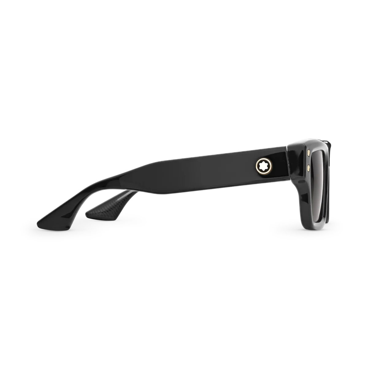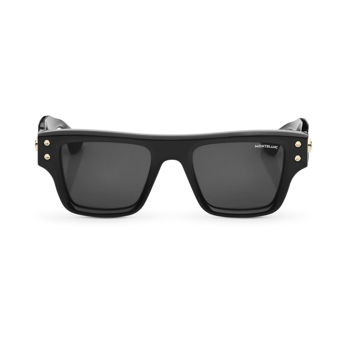 Questi occhiali da sole di forma rettangolare hanno una montatura in acetato nero e lenti nere. Una forma audace in acetato con dettagli a forma di cappello da neve sui rivetti sulla parte anteriore e il motivo Montblanc Extreme incorporato all’interno del design delle aste. L’emblema Montblanc è incapsulato nell’audace design delle aste. Il logo Montblanc è inciso al laser sulla lente sinistra e il motivo antiscivolo è inciso al laser sul lato interno delle punte delle aste per aumentare il comfort.