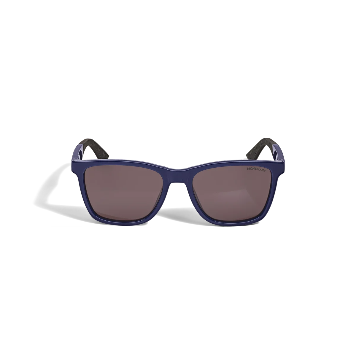 Scopri tutti i dettagli degli occhiali da sole squadrati con montatura blu iniettata. Acquista online sul negozio ufficiale Montblanc.