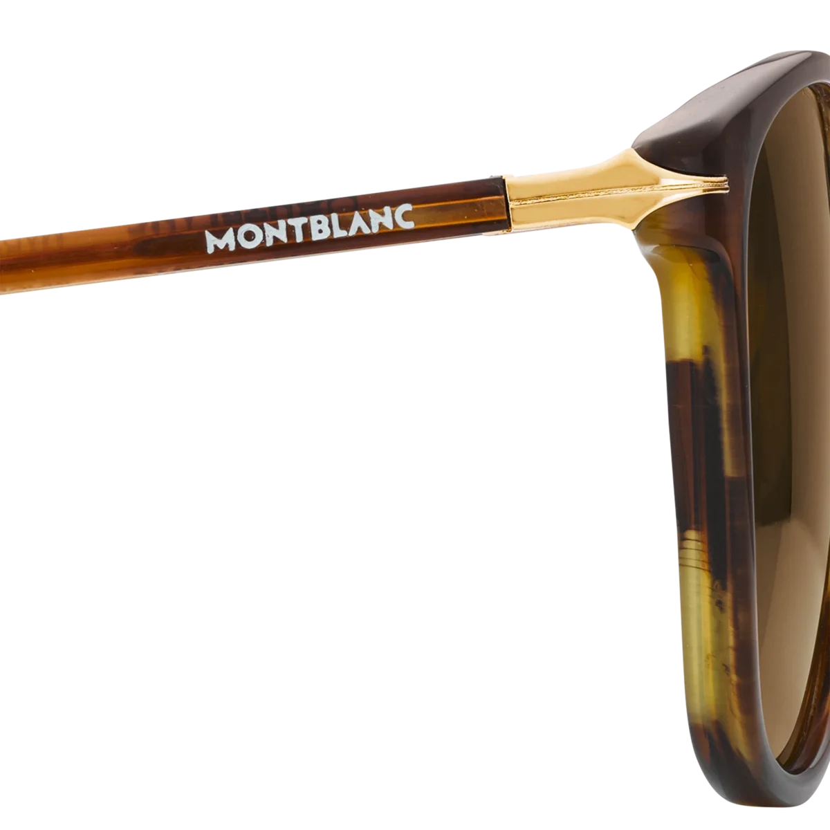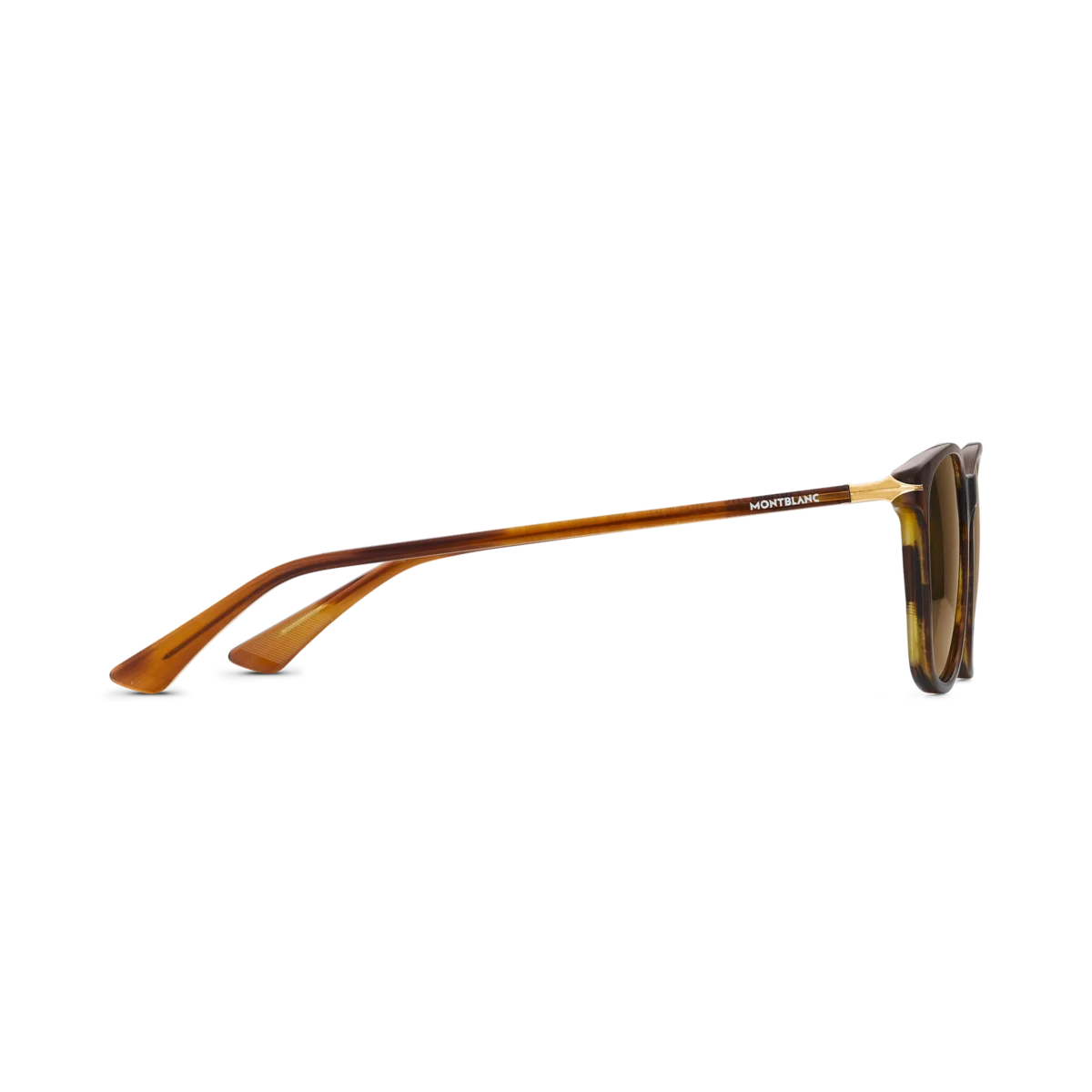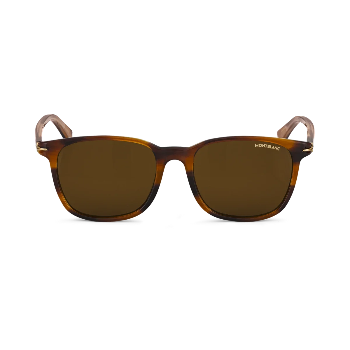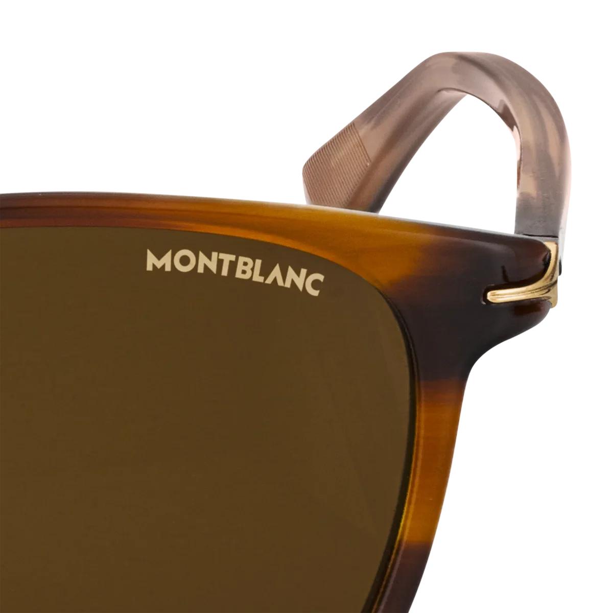 Questi occhiali da sole squadrati presentano una montatura in acetato marrone e lenti marroni. Ispirati al design del pennino degli strumenti di scrittura, presentano un dettaglio decorativo sul design delle aste in acetato. Il logo Montblanc è inciso al laser sulla lente sinistra.