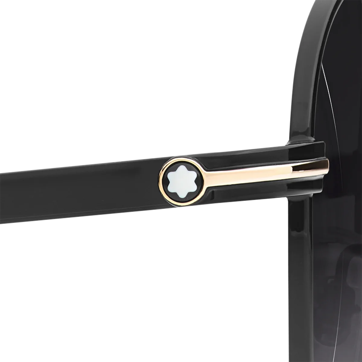 Questi occhiali da sole dal design squadrato hanno una montatura in metallo nero e lenti grigie. Gli occhiali da sole presentano un dettaglio a tre anelli ispirato alla collezione Meisterstück, che collega ciascuna lente con l’emblema Montblanc Snowcap incapsulato nel design delle aste.