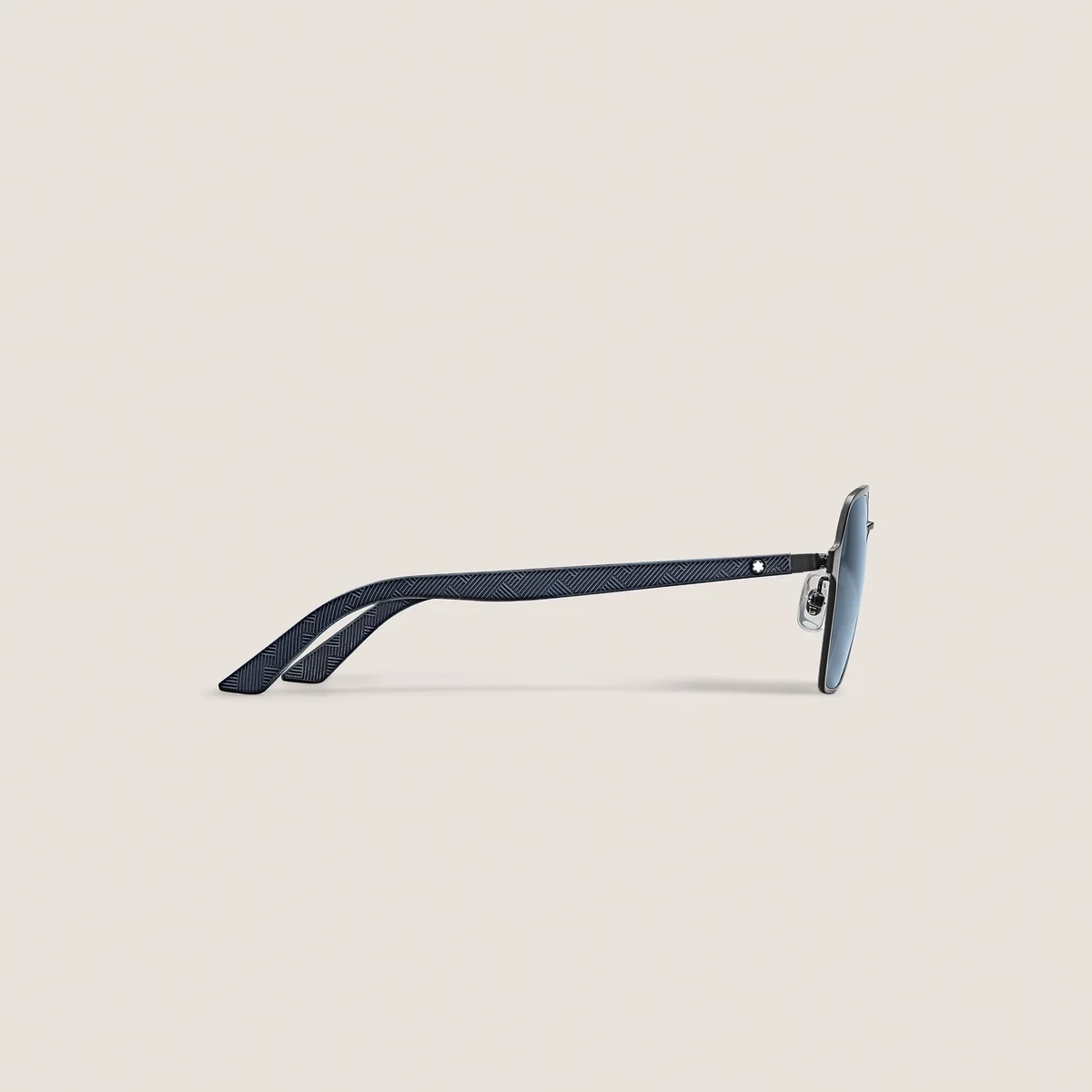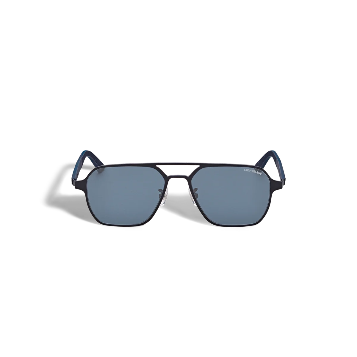Questi occhiali da sole di forma squadrata hanno una montatura in metallo nero e lenti blu. Presentano un doppio ponte in metallo sulla parte frontale. L’emblema Montblanc è incastonato nel design delle aste, le cui estremità sono dotate di puntali in gomma con il motivo Montblanc Extreme 3.0 per conferire un look sportivo. Il logo Montblanc è inciso al laser sulla lente sinistra degli occhiali da sole.