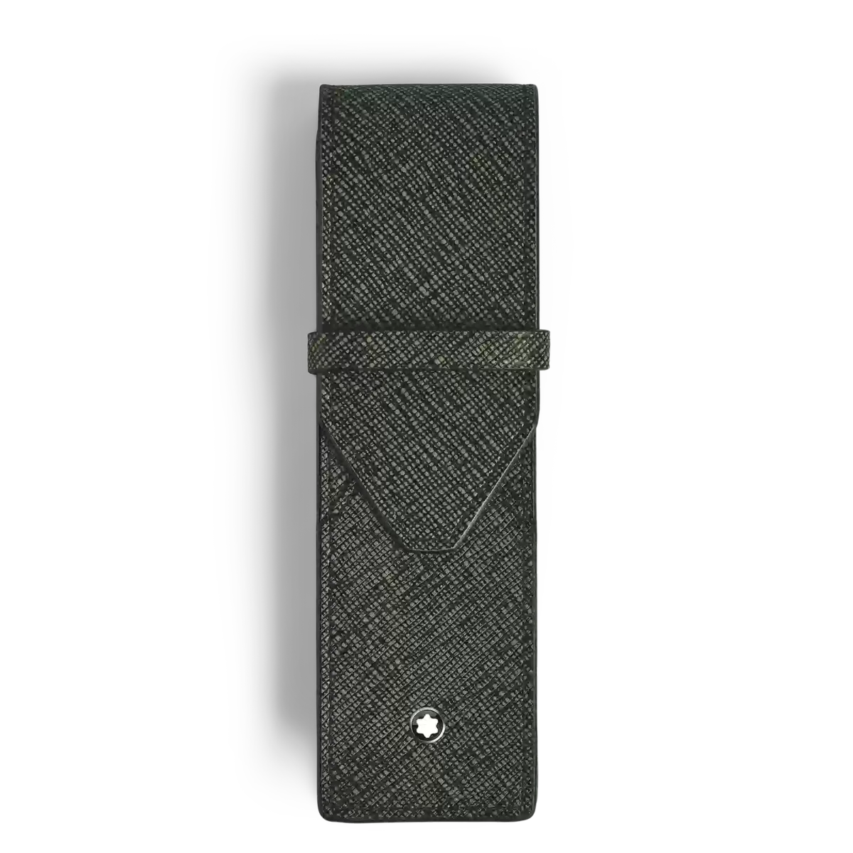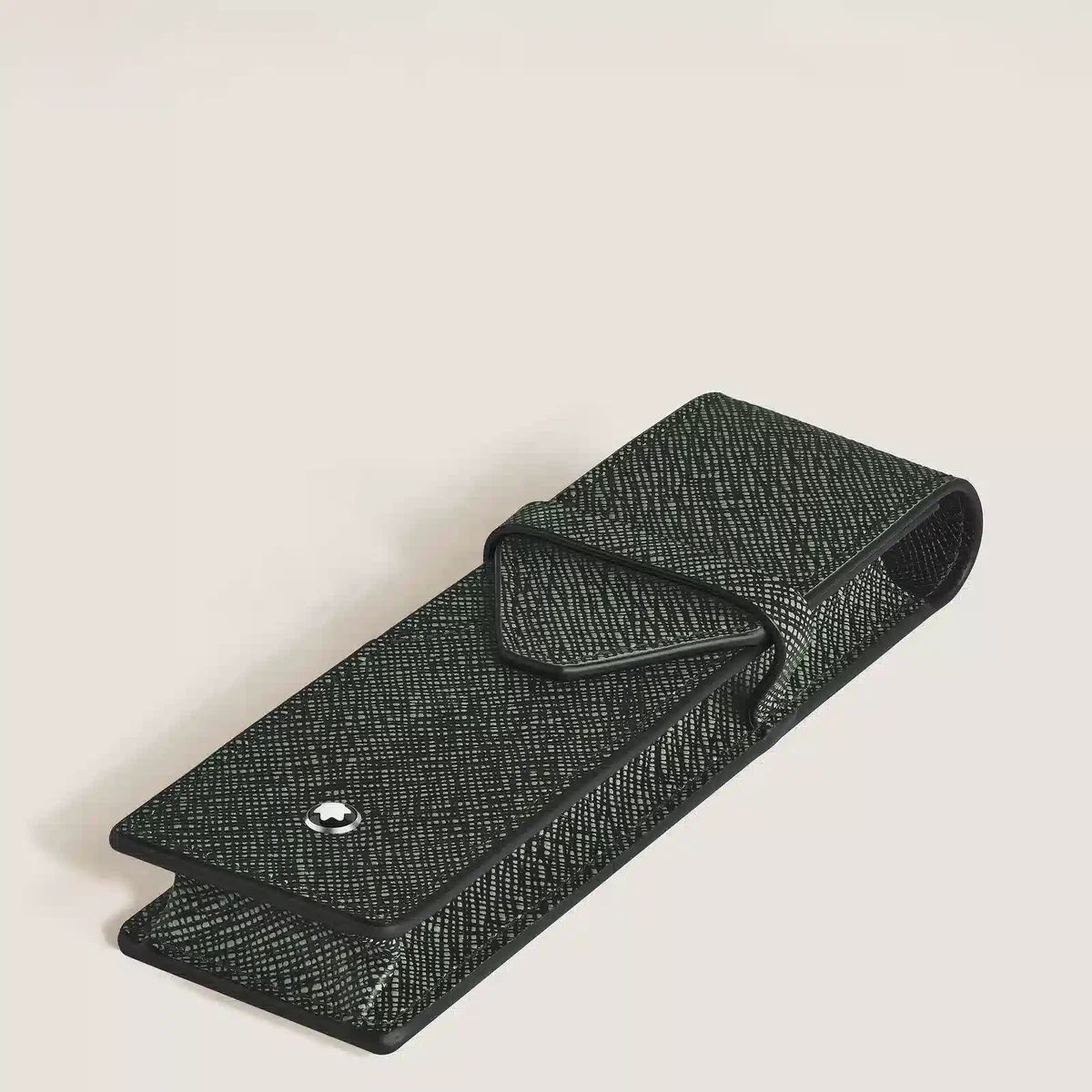Accessorio elegante e raffinato, questo astuccio per penne è progettato per contenere fino a due strumenti di scrittura. Realizzato in pelle sartoriale goffrata in un’elegante combinazione bicolore di kaki e nero, la sua silhouette sovrapposta si ispira alla forma di una busta, rendendo omaggio alla cultura della scrittura.