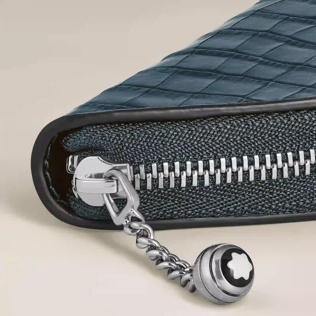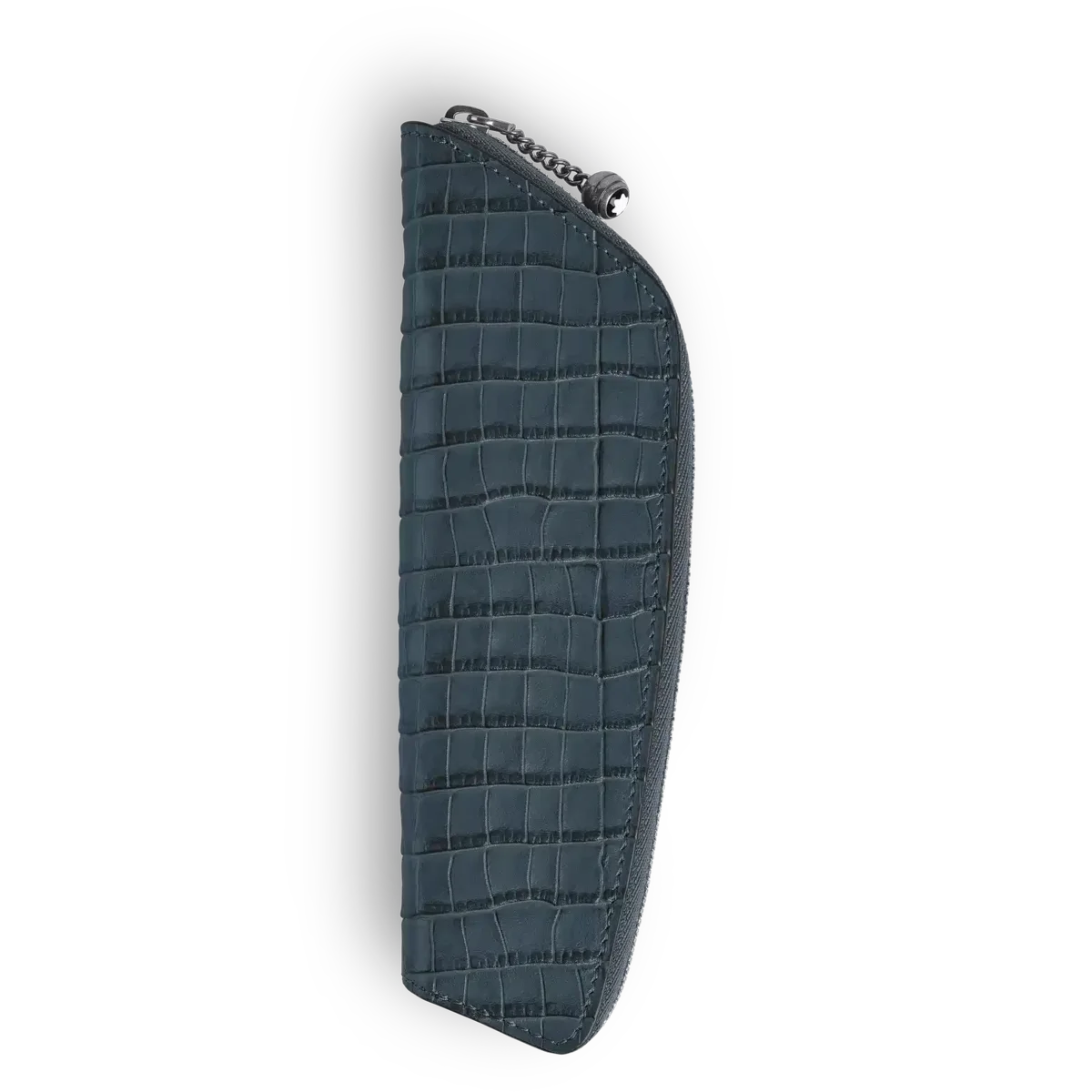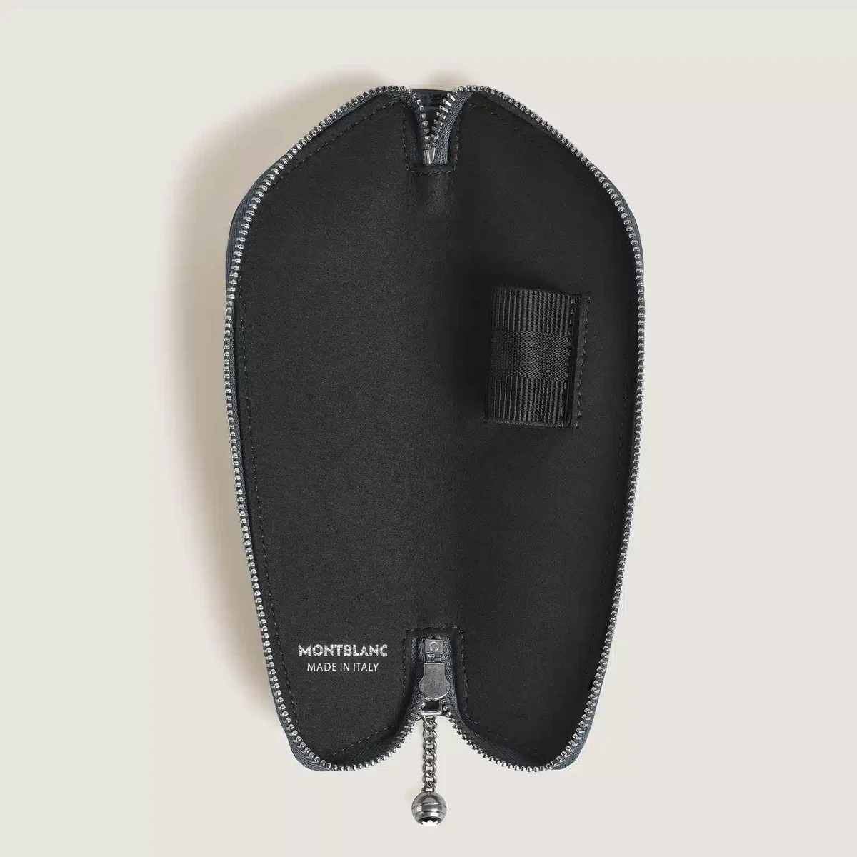 Il portapenne celebra la tradizione Montblanc con un tocco moderno. Realizzata in pelle blu vellutata con stampa cocco, presenta l’iconico tiretto della cerniera a catena con emblema sferico, ispirato a un astuccio per penne Montblanc d’archivio, una delle prime creazioni in pelle del marchio. Progettato per contenere uno strumento di scrittura, come la Meisterstück Classique o la LeGrand, questo elegante astuccio unisce uno stile distintivo alla praticità quotidiana.
