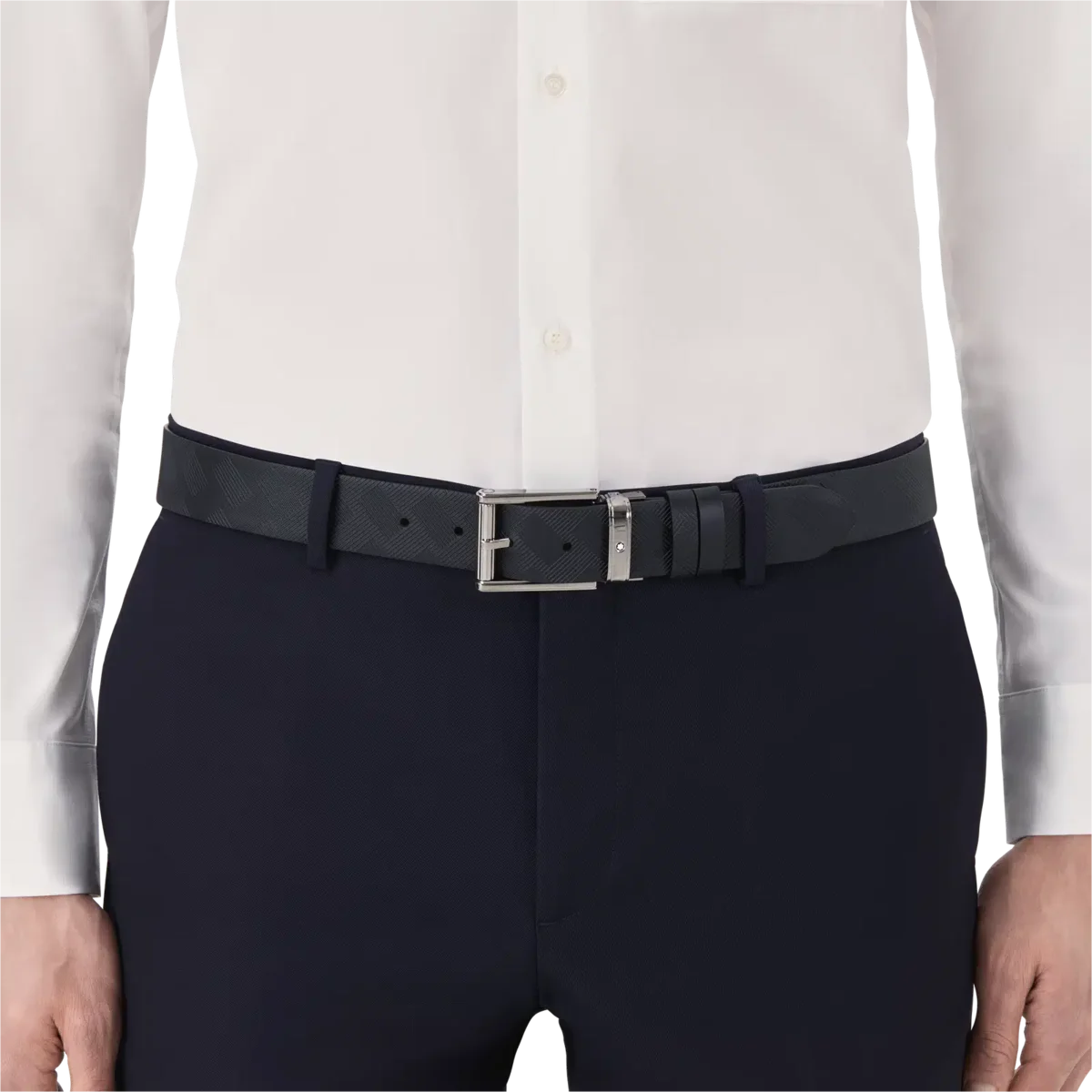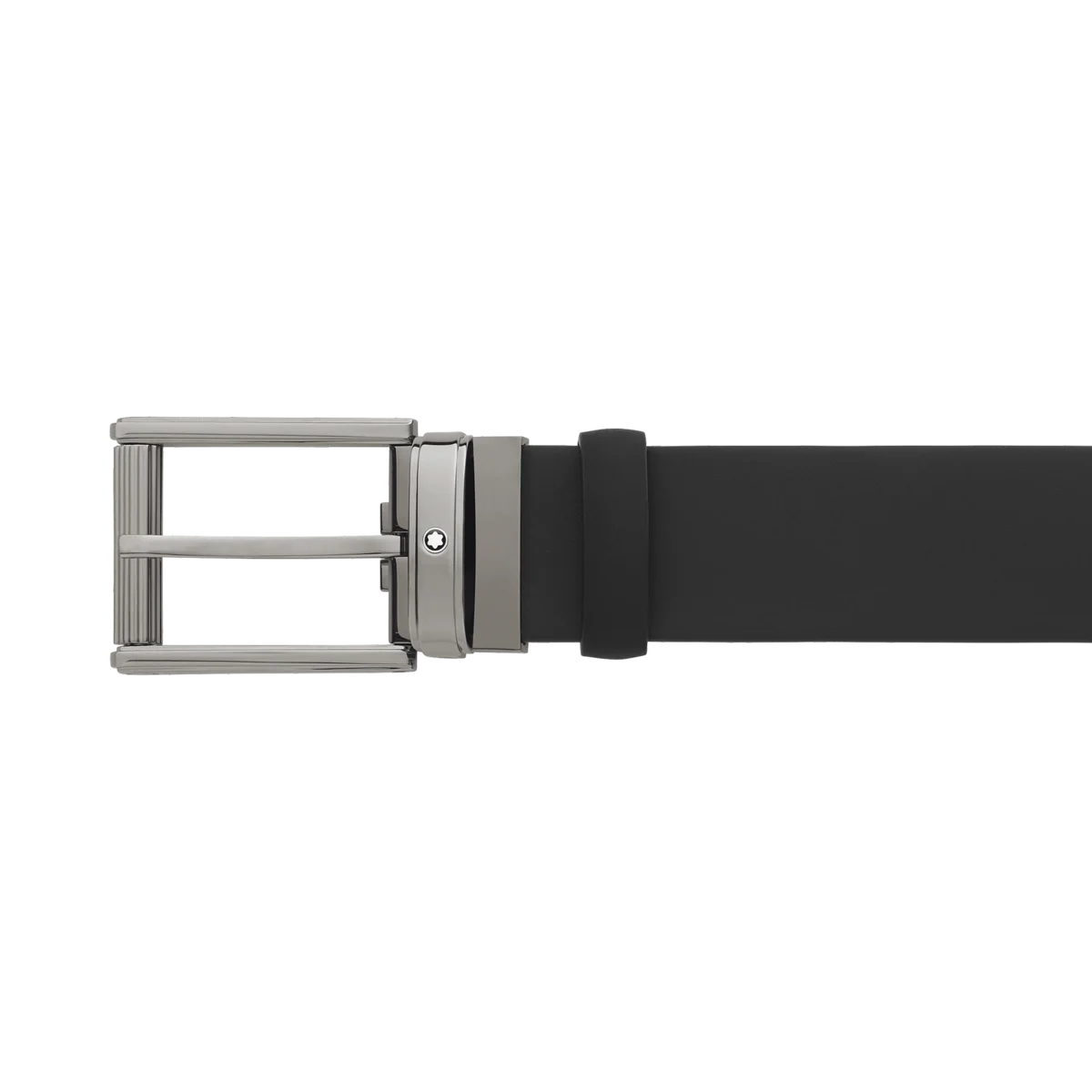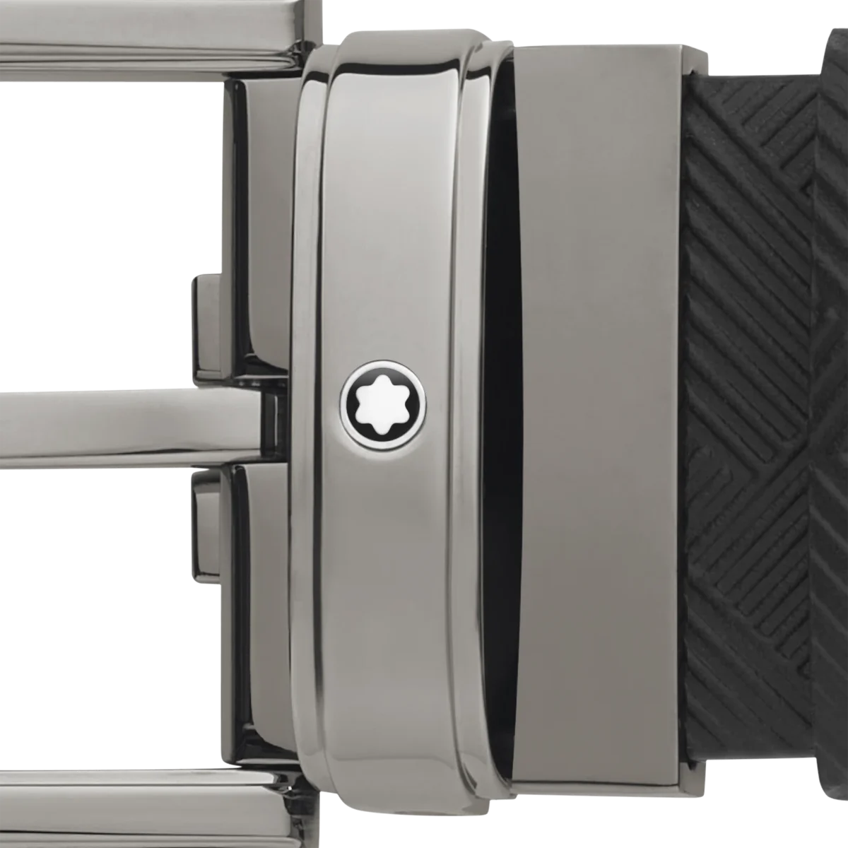 Rotolo rettangolare, fibbia ad ardiglione con finitura lucida in rutenio. Cinturino in pelle Montblanc Extreme 3.0 nero autoregolabile. Progettato per un look sportivo.