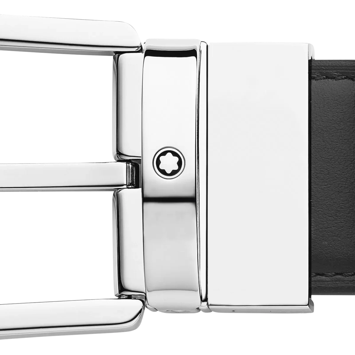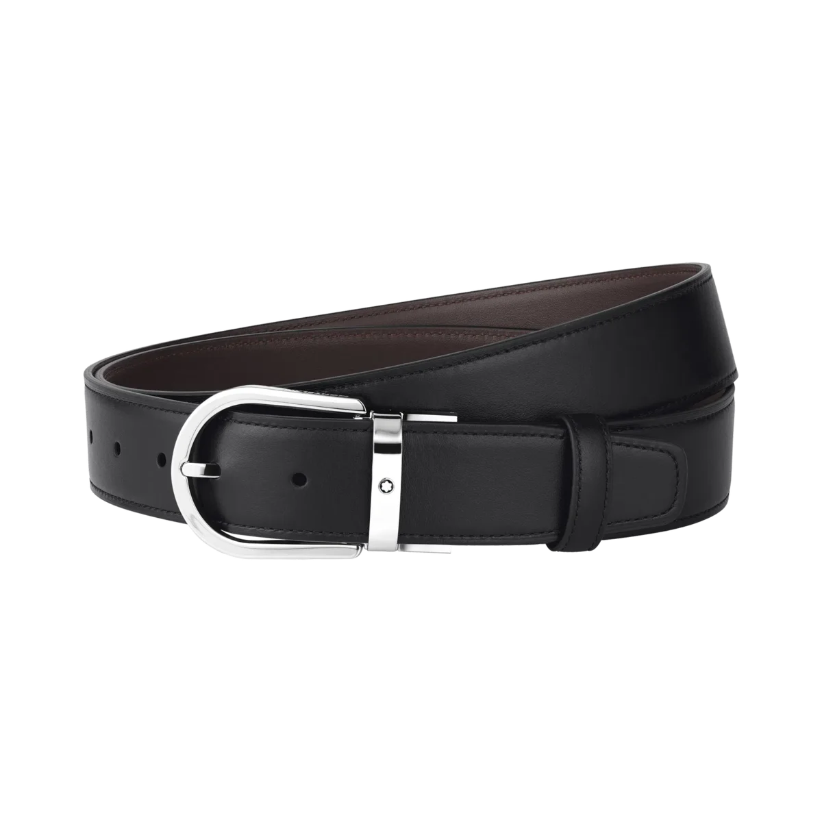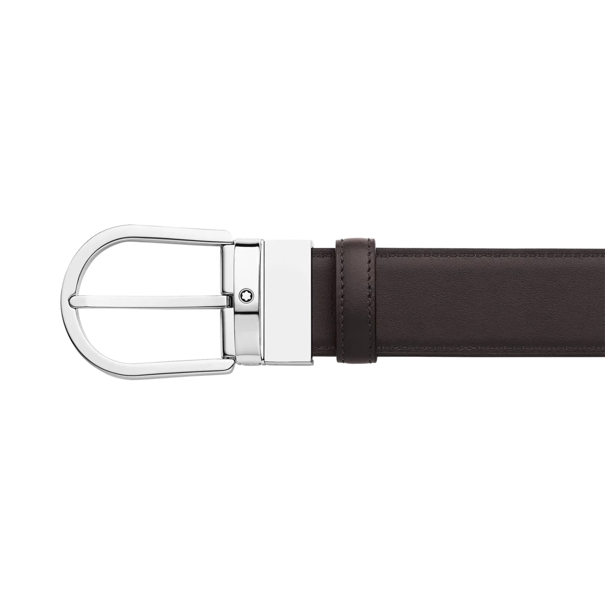 Fibbia ad ardiglione con finitura palladio lucido a ferro di cavallo. Cintura in pelle reversibile, autoregolabile, 3,5 cm x 120 cm, di colore nero su un lato e marrone scuro sull’altro. Raffinata e sobria, per qualsiasi tipo di look.