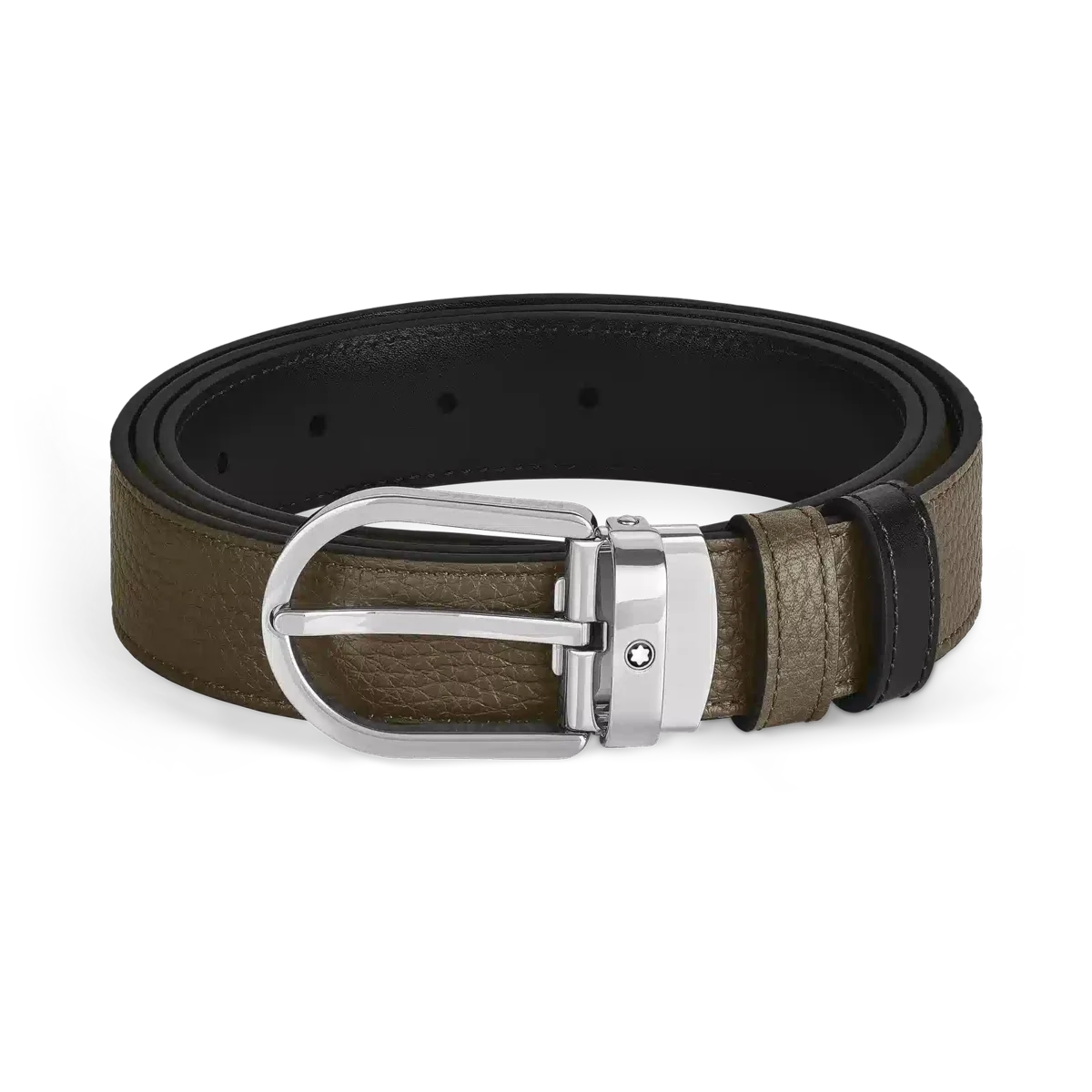 Questa cintura reversibile combina eleganza discreta e praticità, offrendo due stili distintivi in un unico accessorio. Caratterizzata dalla nostra distintiva fibbia a ferro di cavallo Montblanc con finitura in palladio, un lato del cinturino da 30 mm è realizzato in pelle martellata color cachi, mentre il retro è in elegante pelle Meisterstück nera per un tocco di raffinatezza classica.