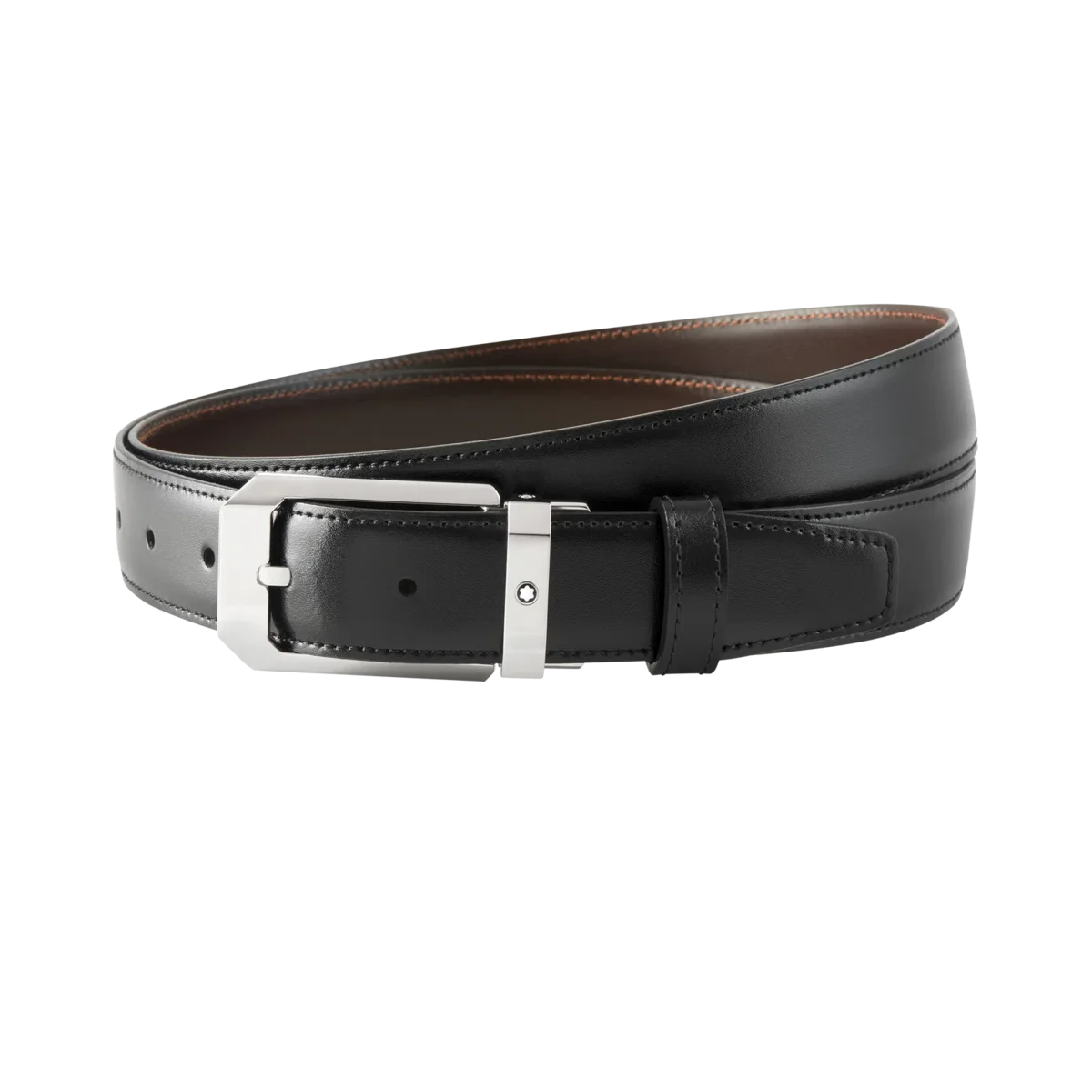 Fibbia rettangolare in acciaio inossidabile lucido. Cintura in pelle reversibile nero/marrone autoregolabile, 3 cm x 120 cm, abbinabile a qualsiasi abito da lavoro. Raffinato e sobrio, questo modello intramontabile soddisferà i clienti alla ricerca di una cintura business classica.