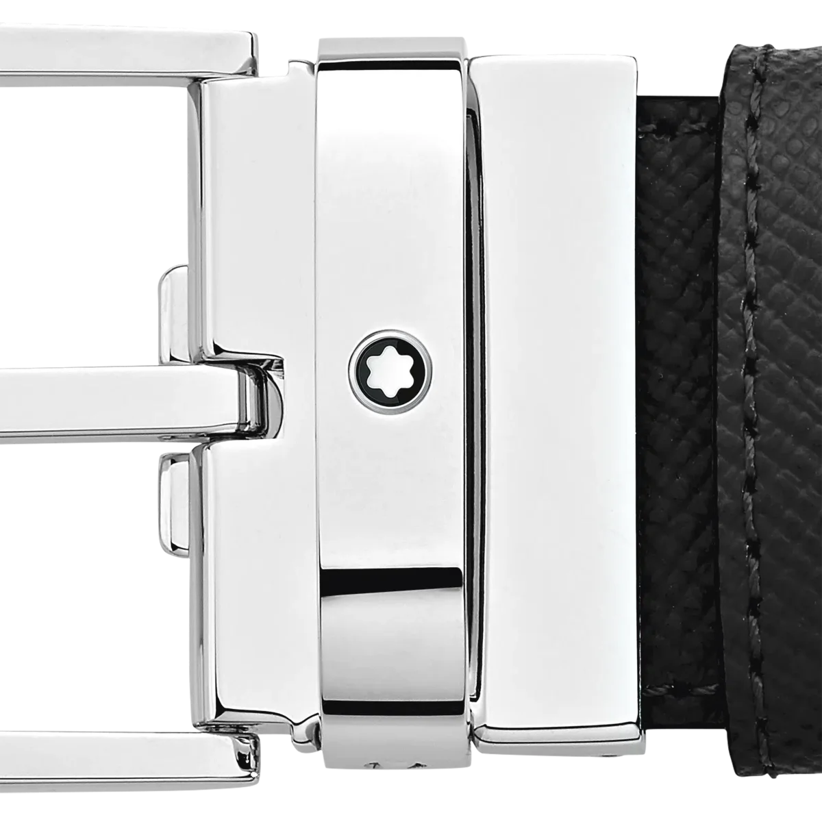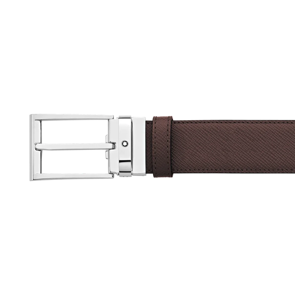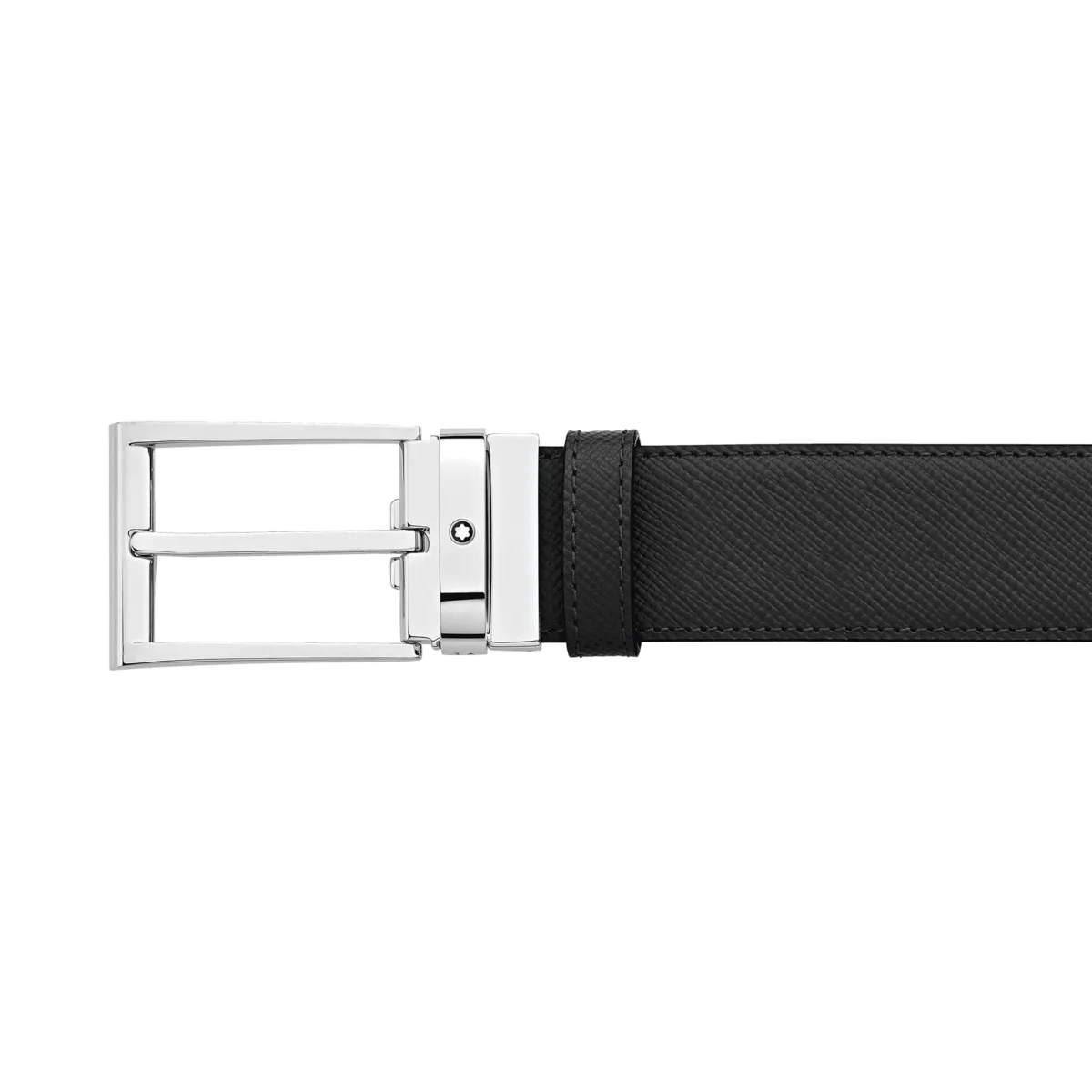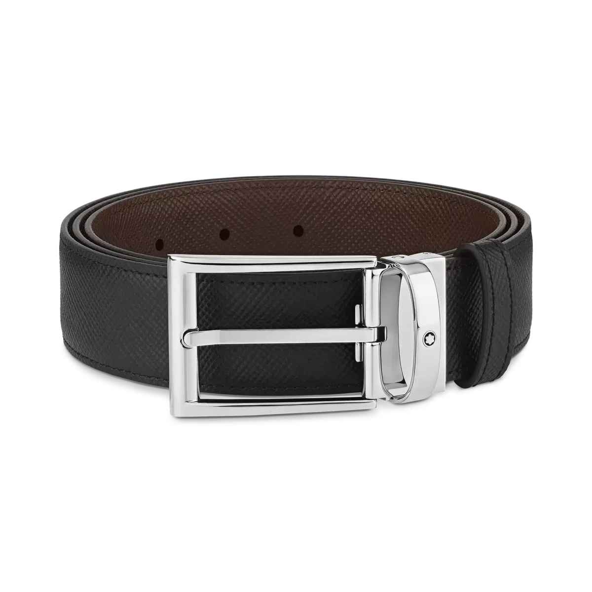 Fibbia ad ardiglione trapezoidale lucida rivestita in palladio. Cintura auto-regolabile, 3,5 cm x 120 cm, reversibile in pelle Saffiano nera e marrone abbinata alla linea di pelletteria Montblanc Sartorial. Questa cintura reversibile presenta una sobria fibbia in acciaio inossidabile e un elegante cinturino in pelle di vitello nero da un lato e marrone dall’altro, che la rendono adatta sia per l’abbigliamento business che casual.