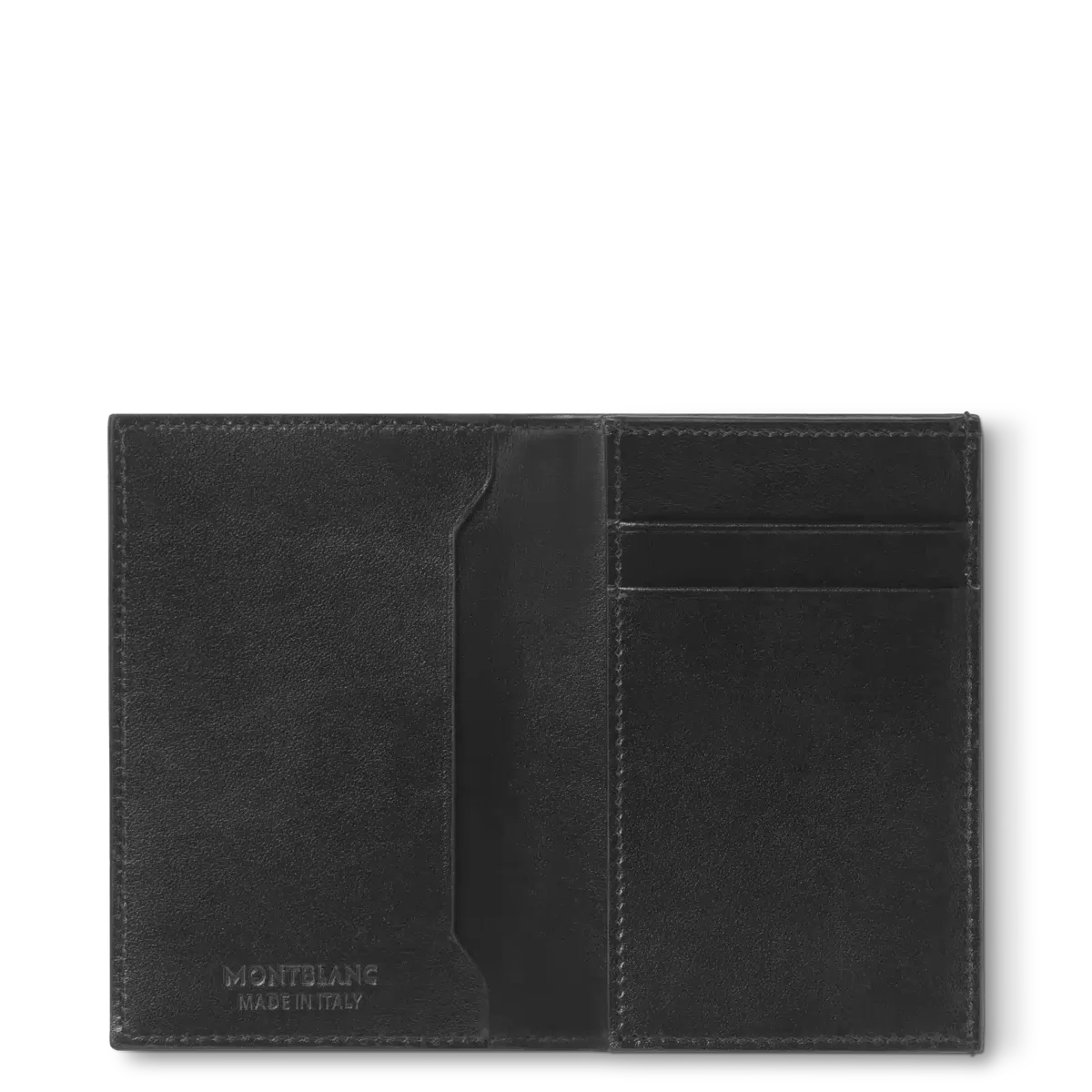 Realizzato in morbida pelle nera, questo elegante porta biglietti da visita può contenere due carte di credito in appositi scomparti e dispone di un ampio scomparto per i biglietti da visita. Sono presenti anche due tasche aggiuntive per banconote piegate o ricevute. È foderato in tessuto nero e rifinito con l’emblema Montblanc.
