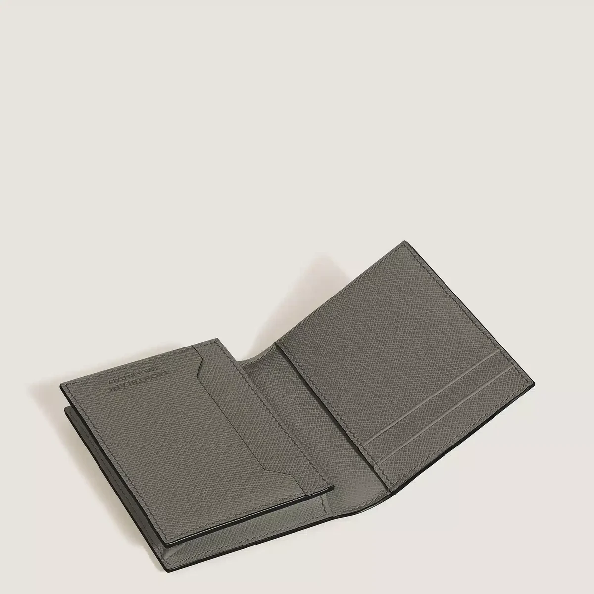 Sebbene di dimensioni compatte, questo portacarte in pelle si rivela un compagno davvero versatile con dettagli funzionali sia all’esterno che all’interno. All’interno sono presenti tre scomparti per carte di credito e uno scomparto per biglietti da visita, oltre a una tasca aggiuntiva. Realizzato in pelle stampata Saffiano di colore grigio medio, l’esterno presenta uno scomparto aggiuntivo per una quarta carta di credito.