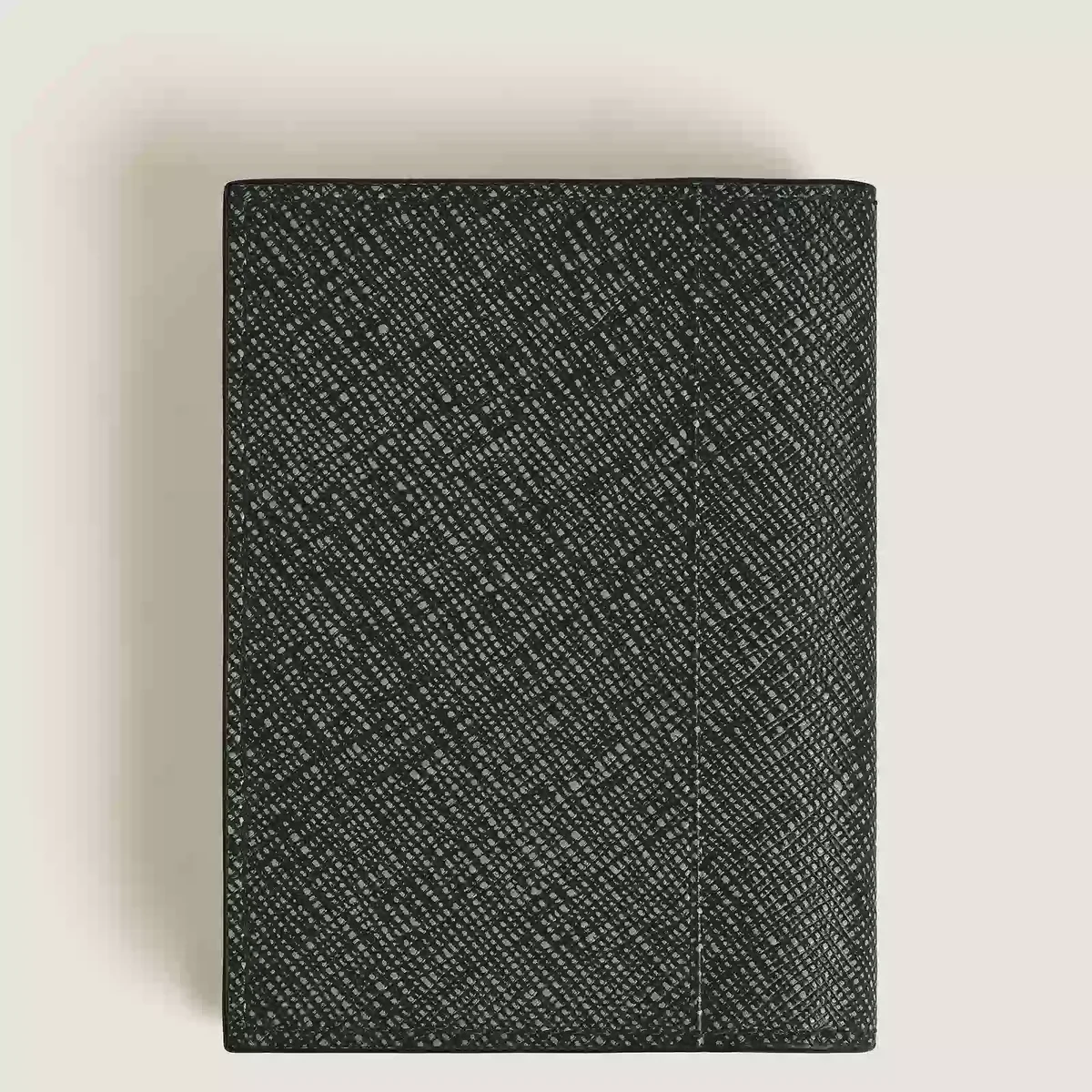 Compatto ma versatile, questo portacarte è realizzato in pelle sartoriale goffrata bicolore in un’elegante combinazione di kaki e nero. Progettato con dettagli funzionali all’interno e all’esterno, è dotato di tre scomparti per carte di credito, uno scomparto per biglietti da visita e una tasca aggiuntiva all’interno, mentre l’esterno include uno scomparto extra per una quarta carta di credito.