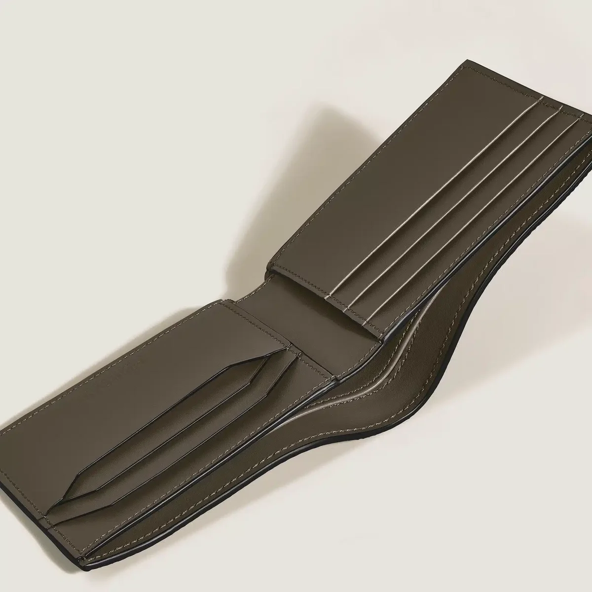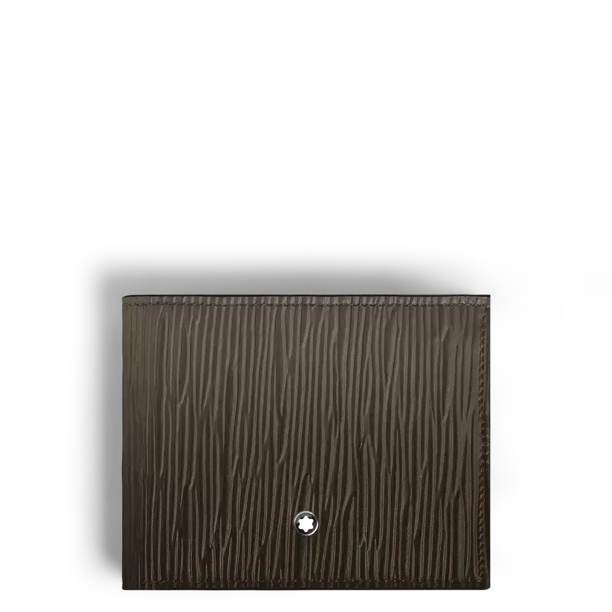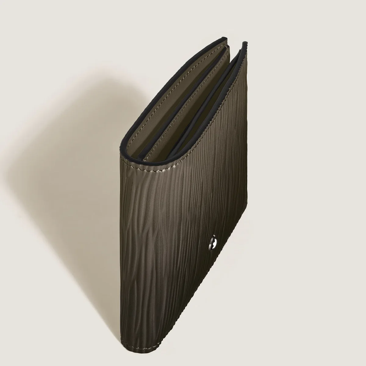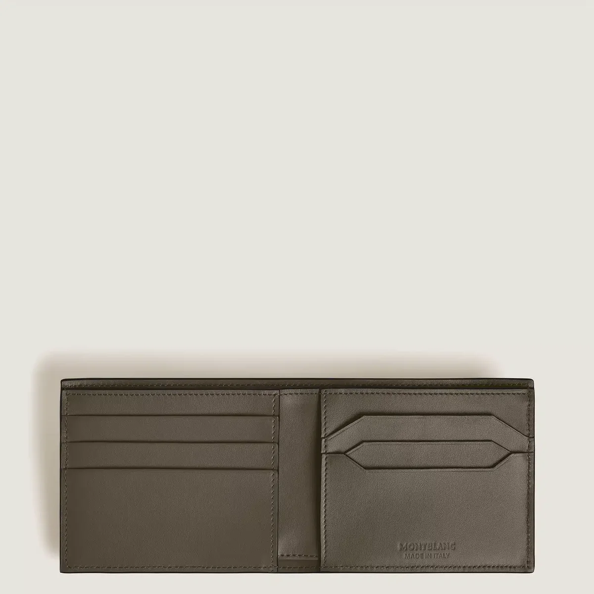 Sottile ed elegante, questo classico portafoglio a doppia piega è un compagno elegante per l’uso quotidiano. Realizzato in pelle Corteccia color cachi con motivo a corteccia di albero in rilievo ed effetto sfumato applicato a mano, combina raffinata maestria artigianale e praticità. All’interno presenta sei scomparti per carte di credito, due scomparti per banconote, due tasche aggiuntive per ricevute e il discreto emblema Montblanc sul davanti.
