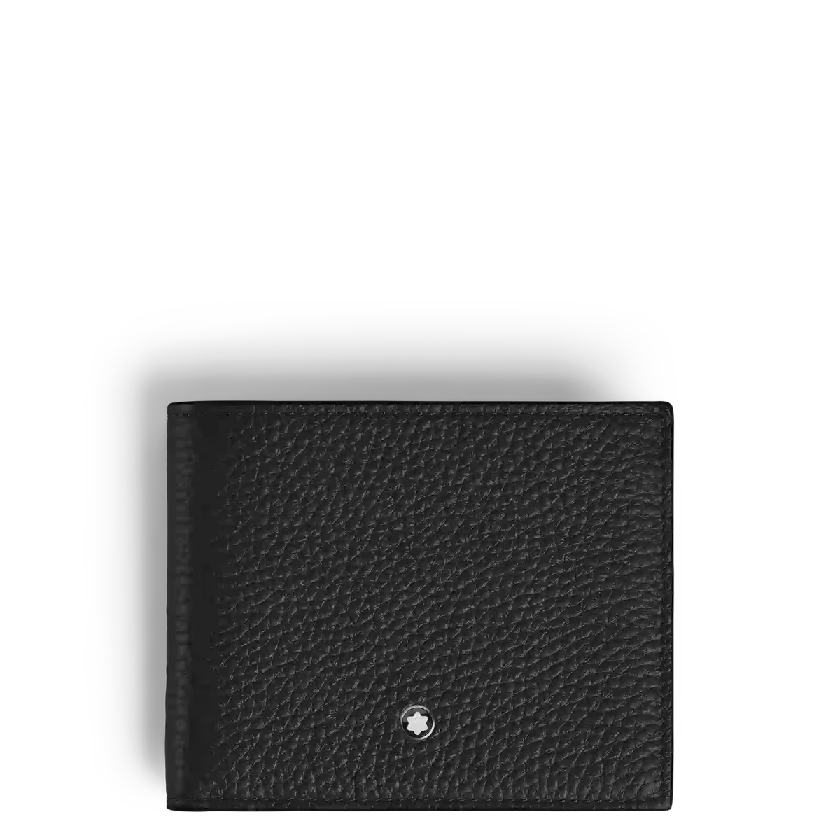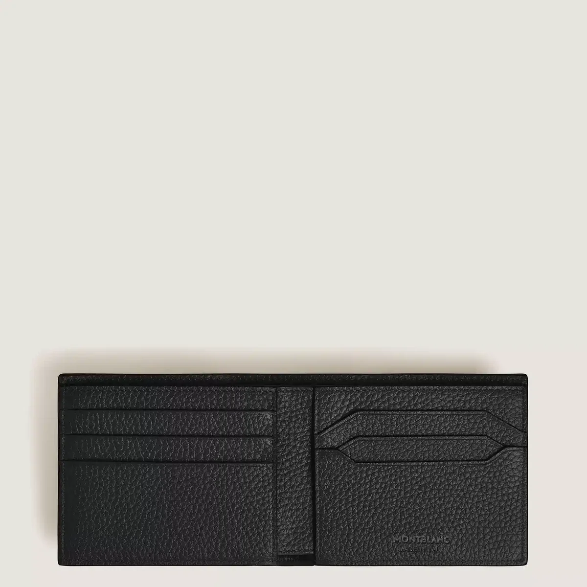 Sottile e sofisticato, questo classico portafoglio bifold in pelle nera premium grain è una scelta elegante per l’uso quotidiano. Progettato con cura, è dotato di sei scomparti per carte di credito, due scomparti per banconote e due tasche aggiuntive per le ricevute. Foderato in tessuto nero e rifinito con l’iconico emblema Montblanc, combina praticità e stile intramontabile.
