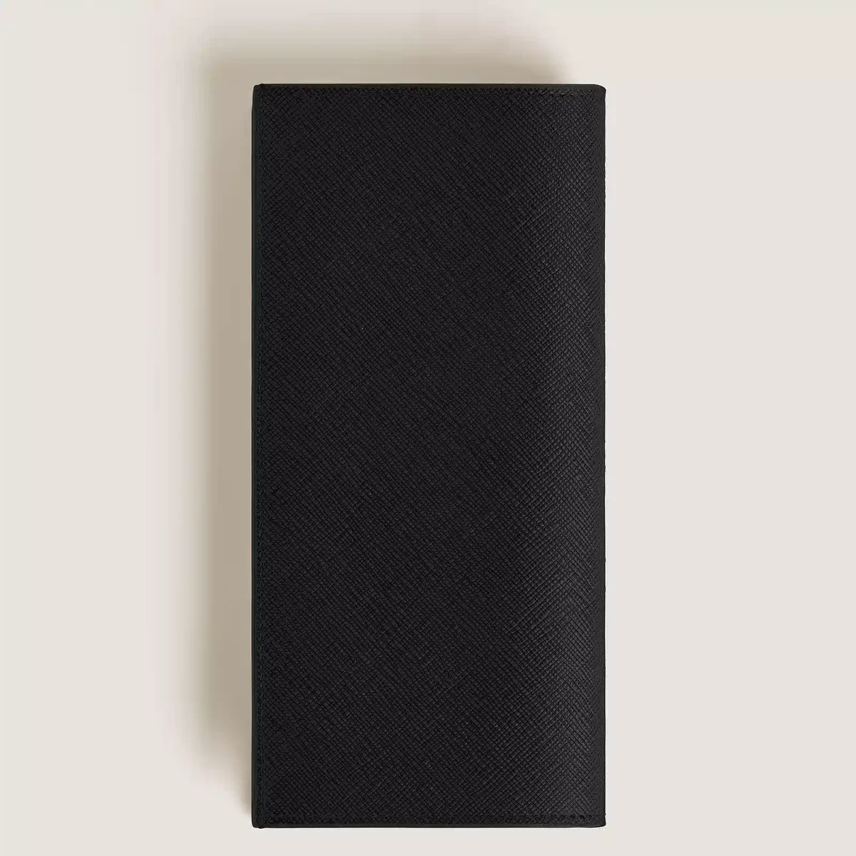 Progettato pensando allo stile e alla funzionalità, questo portafoglio è realizzato in pelle sartoriale goffrata di colore nero. È dotato di una spaziosa tasca con cerniera per riporre monete o oggetti essenziali, oltre a 14 scomparti dedicati alle carte di credito. Inoltre, include due scomparti per le banconote, due tasche extra per le ricevute ed è completato dall’iconico emblema Montblanc.