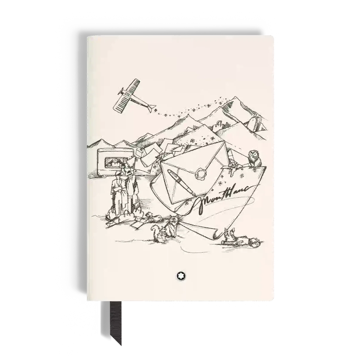 Il taccuino presenta un’illustrazione monocromatica in stile disegnato a mano. Ispirata a una pubblicità Montblanc del 1924 che raffigurava una coppia in viaggio, l’illustrazione ora colloca i due viaggiatori ai piedi del Monte Bianco, circondati da aerei d’epoca, treni e lettere in volo. Il motivo nostalgico celebra non solo il viaggio fisico e la meraviglia dell’esplorazione, ma anche il viaggio della narrazione attraverso il tempo e la distanza, riflettendo la fede incrollabile di Montblanc nella connessione attraverso la scrittura. Questo taccuino, sapientemente realizzato a mano in Italia con le pelli più pregiate, presenta 96 fogli raffinati progettati per catturare i tuoi pensieri e i tuoi sogni. Combinando eleganza e praticità, questo taccuino di medie dimensioni passa facilmente dalla scrivania alla borsa, pronto ad accompagnarti nei tuoi momenti più cari. Prodotto in Italia. Dimensioni 150 x 210 mm.