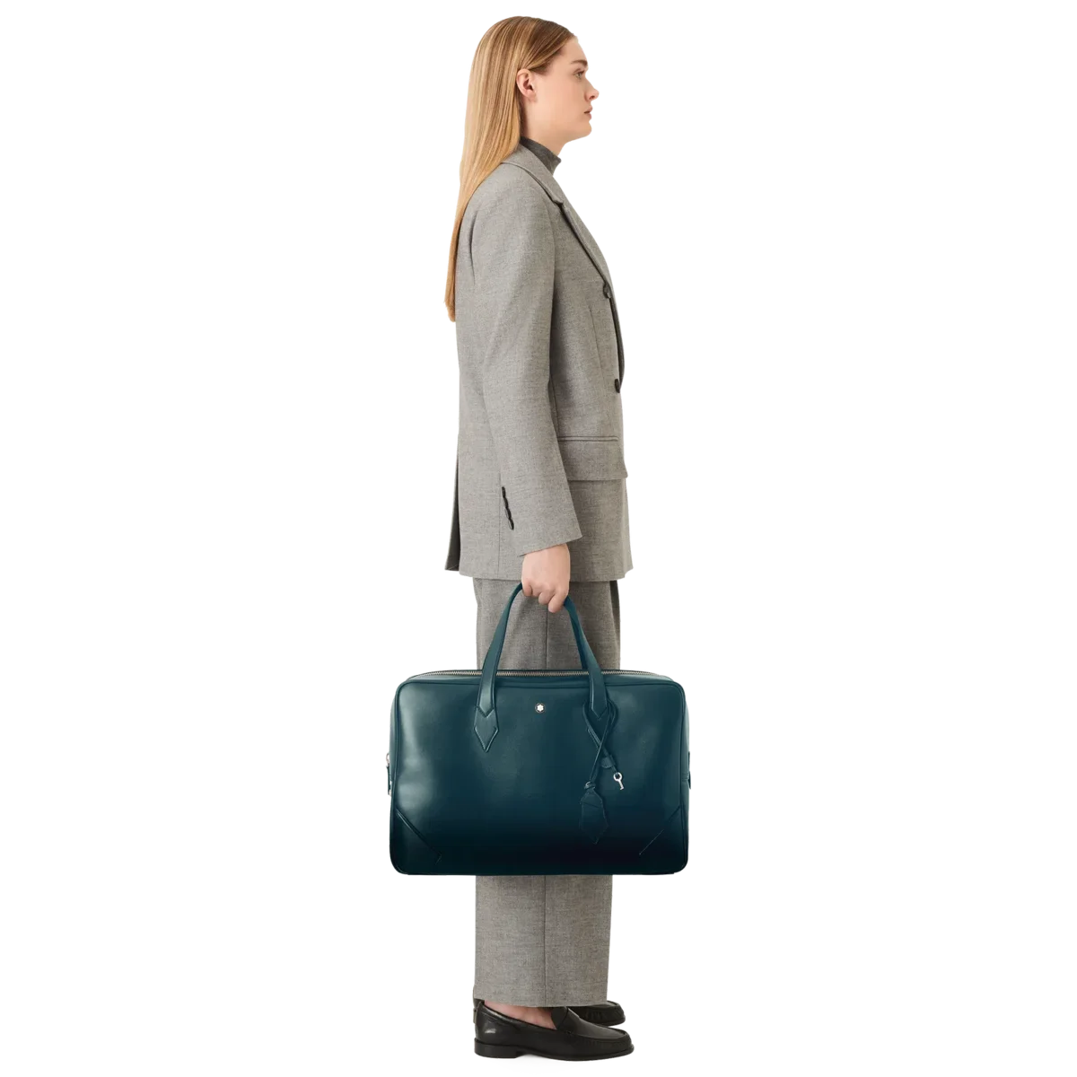 Scopri la compagna ideale per le tue giornate fuori casa: la borsa Montblanc 149. Realizzata con maestria in lussuosa pelle verde britannica con un affascinante effetto sfumato, questa borsa è una testimonianza della ricca tradizione di Montblanc nel campo della scrittura. All’interno troverai una tasca con cerniera, due tasche aperte e un passante dedicato per il tuo strumento di scrittura. Ispirati all’iconico pennino, le cuciture, i tiretti delle cerniere e i manici trasudano eleganza. Parte della collezione 100 Years The Origin, questa borsa da viaggio incarna l’artigianato senza tempo.