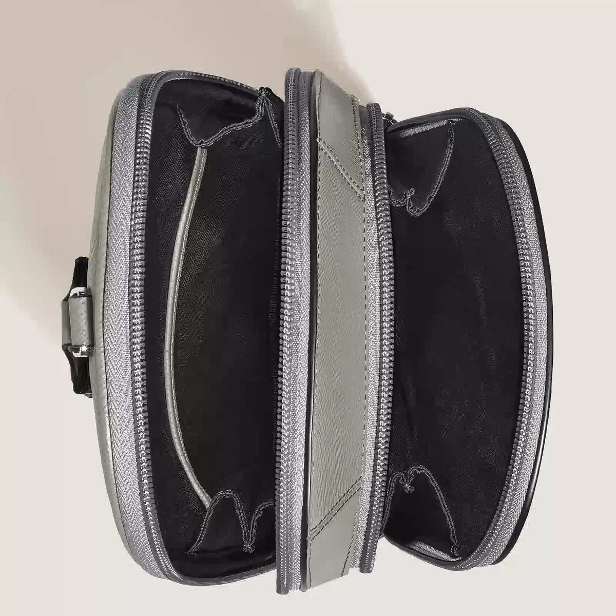 La nuova borsa a tracolla Sartorial, realizzata in elegante pelle Saffiano goffrata grigio medio, aggiunge un tocco di modernità casual al tuo look quotidiano. Questo accessorio funzionale è dotato di una chiusura con cerniera sicura e di una tracolla regolabile per il massimo comfort. Offre uno spazioso scomparto principale, una tasca interna con cerniera per gli oggetti di valore e uno scomparto esterno che include una tasca con cerniera, tre tasche aperte e tre scomparti per carte di credito.