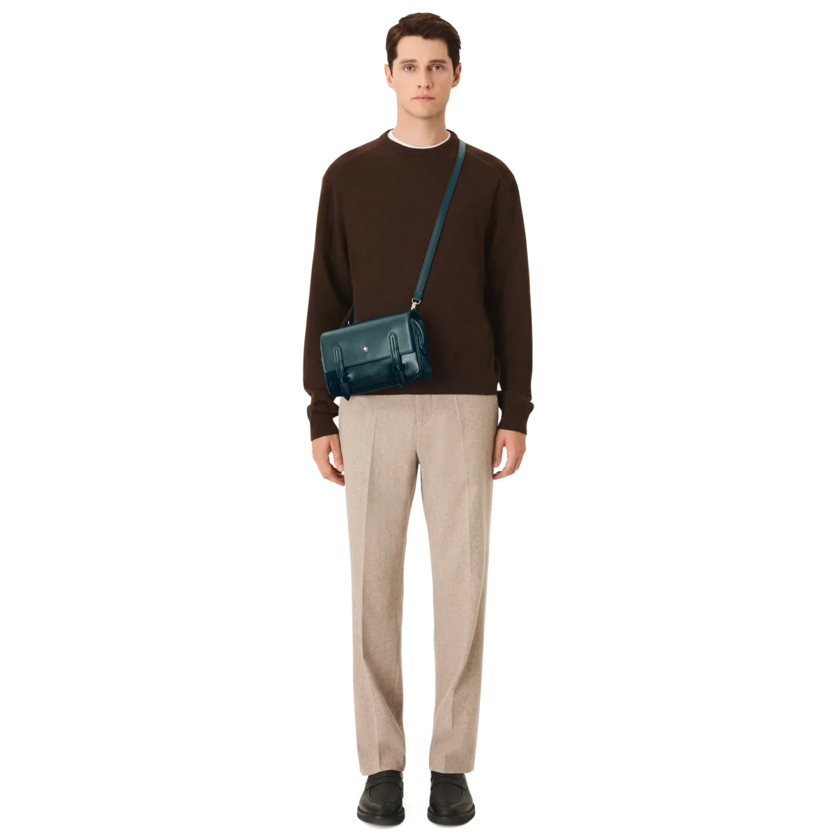 Ti presentiamo la borsa Messenger Meisterstück, un’elegante compagna per le tue avventure quotidiane. Realizzata in pelle verde britannica con un affascinante effetto sfumato, questa borsa fa parte della collezione Capsule 100 Years, che celebra la Meisterstück. Ispirata alla ricca tradizione di Montblanc nel campo della scrittura, ogni dettaglio racconta una storia, riecheggiando l’essenza del pennino. Sollevando la patta si scopre uno spazioso scomparto principale con cerniera e una tasca aperta per organizzare facilmente il contenuto. La tracolla in pelle rimovibile offre comfort e versatilità. Migliora il tuo stile senza sforzo con la Meisterstück Messenger. Avviso sui magneti: consultare la Guida all’uso del prodotto o il nostro sito web prima dell’uso. Se necessario, rivolgersi a un professionista.