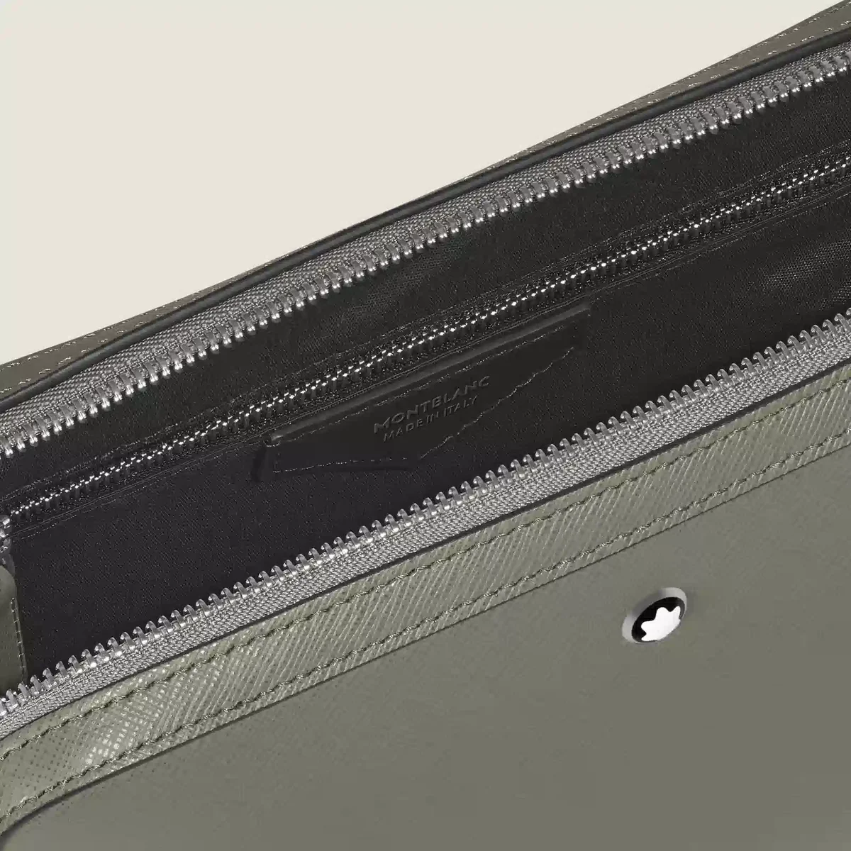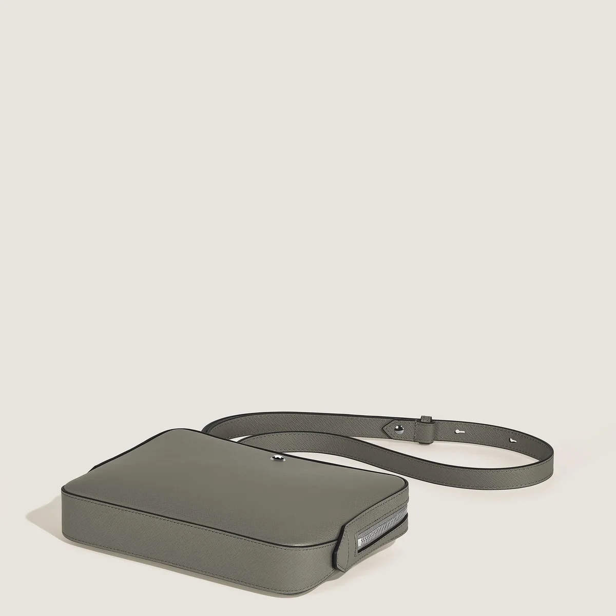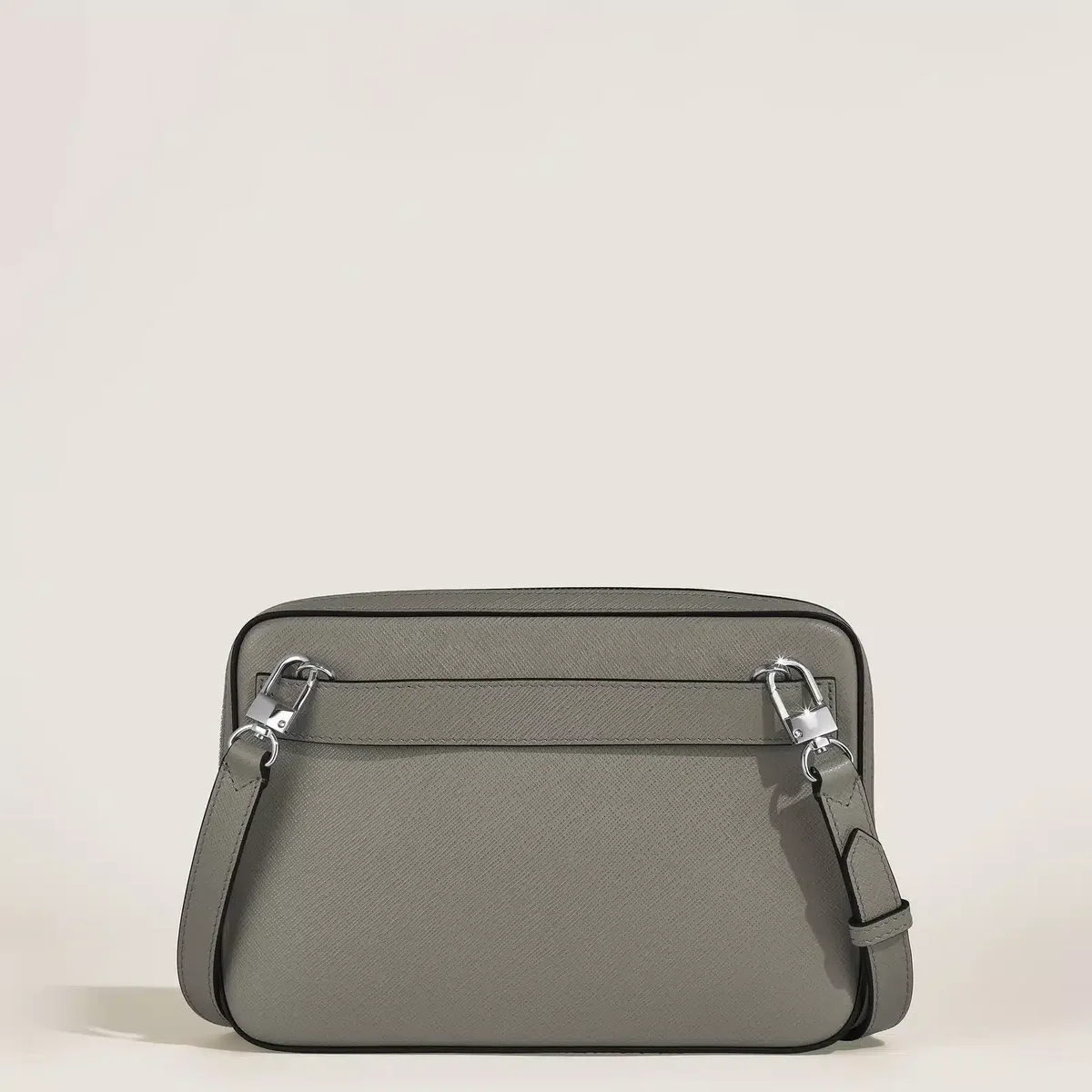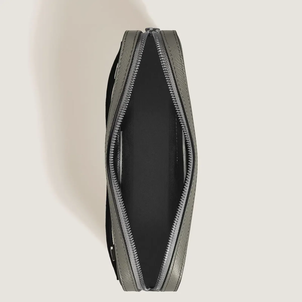 Ispirata al mondo della scrittura, questa borsa compatta può essere portata a mano o a tracolla grazie alla tracolla regolabile e removibile. Realizzata in pelle con stampa Saffiano, il suo elegante colore grigio medio aggiunge un tocco di raffinatezza, mentre l’interno spazioso e la tasca interna aperta offrono spazio per gli oggetti essenziali per una giornata o una serata in città. Per una funzionalità ancora maggiore, è possibile agganciare l’accessorio a borse più grandi utilizzando la fascia in pelle sul retro.