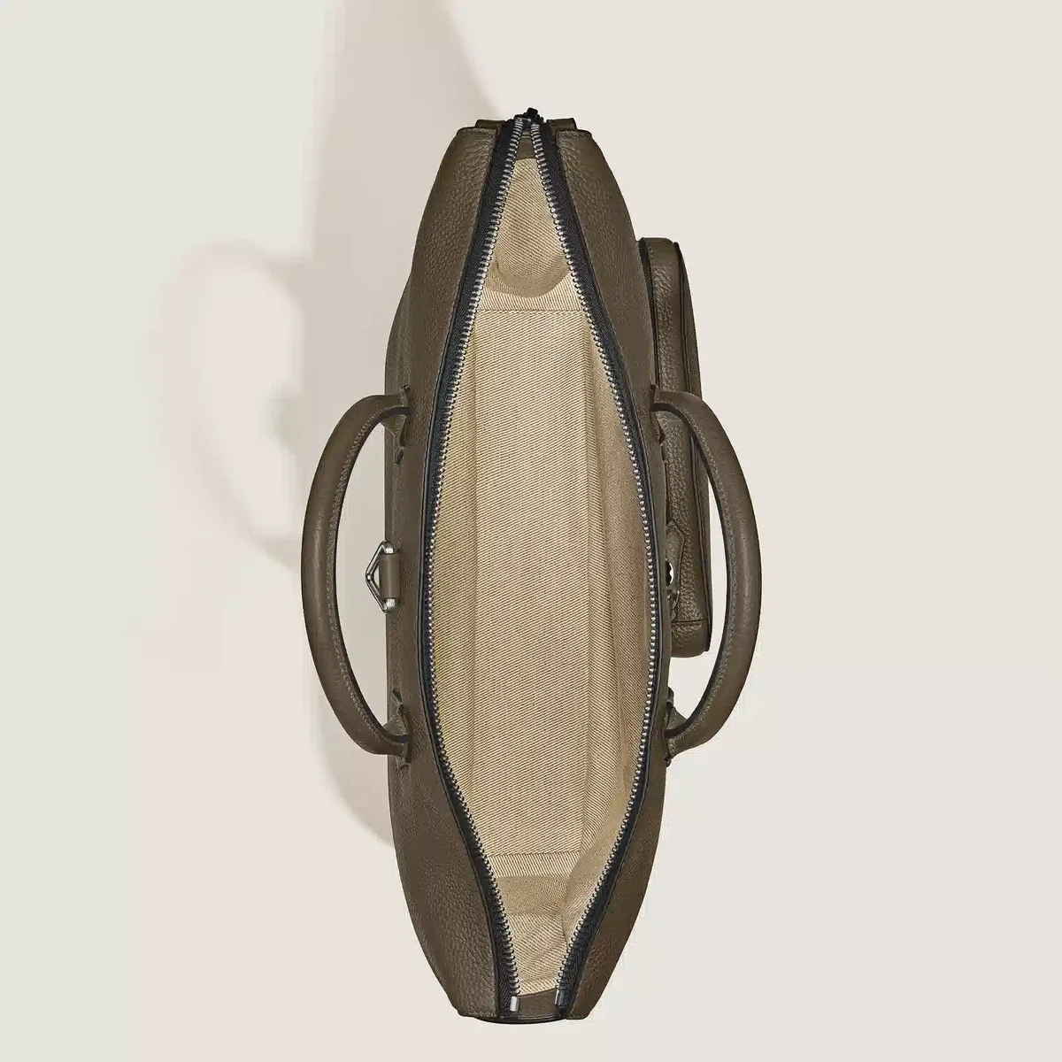 La borsa 24/7 ridefinisce il lusso con le sue forme morbide e il design innovativo. Realizzata in pregiata pelle martellata color cachi, questa borsa presenta un emblema illuminato che rende omaggio alle origini della stella Montblanc. Progettata con cura, include tasche esterne per tenere a portata di mano gli oggetti essenziali e presenta dettagli distintivi come cerniere a forma di pennino, bottoni a pressione e cuciture raffinate. Progettata per essere versatile, la borsa offre due manici superiori e due tracolle staccabili, che consentono di trasformarla facilmente in uno zaino.