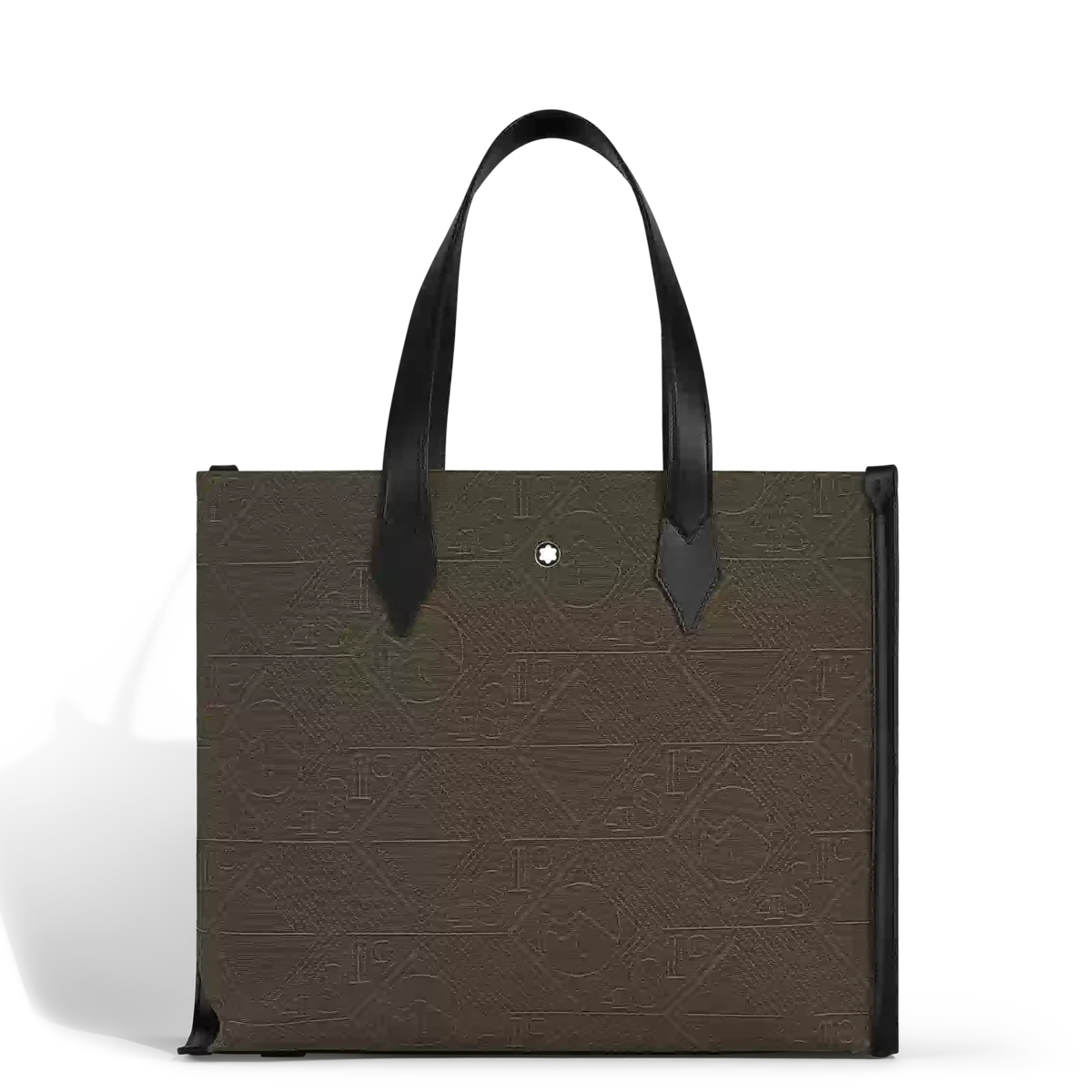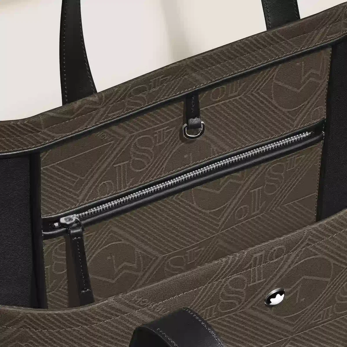 Parte della linea più esclusiva di Montblanc, questa borsa tote media presenta forme morbide esaltate dall’innovativo materiale jacquard 4810. Il motivo tridimensionale e strutturato si ispira ai disegni Art Déco dell’archivio Montblanc, alle linee architettoniche della Montblanc Haus e all’iconica vetta del Monte Bianco, alta 4810 metri. Realizzato con una meticolosa tessitura jacquard, tintura a pezza e un processo di lavaggio con pietre, il tessuto color cachi emana un fascino sofisticato e vissuto. Progettata per essere sia elegante che pratica, è dotata di manici in pelle nera a forma di pennino. L’interno spazioso include una tasca con cerniera, due tasche aperte e 2 passanti per strumenti di scrittura.