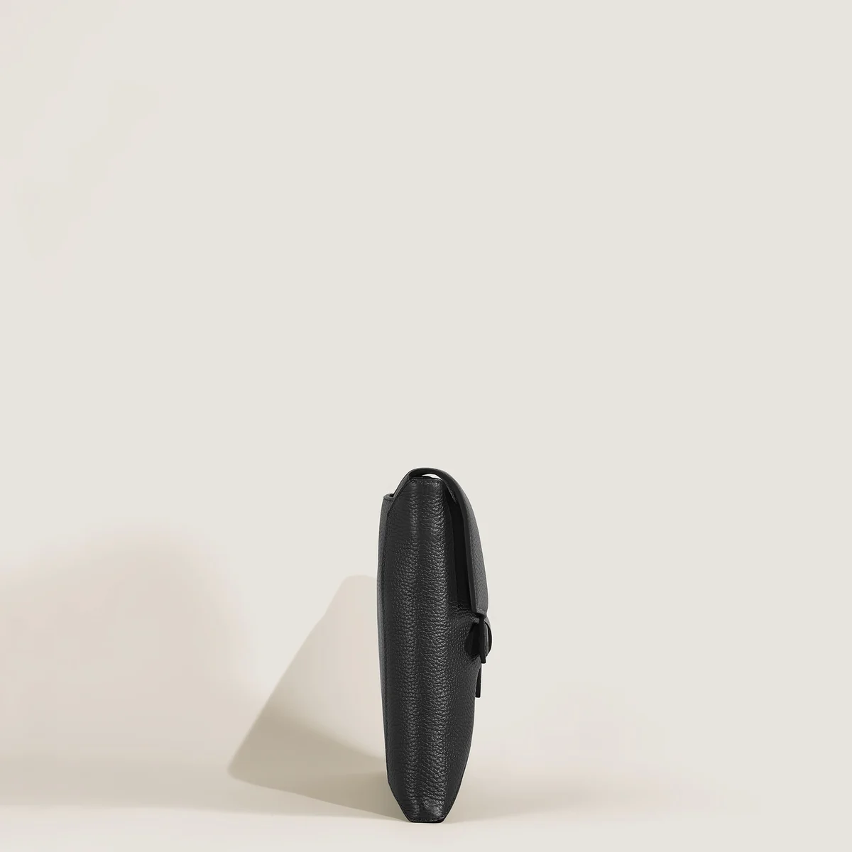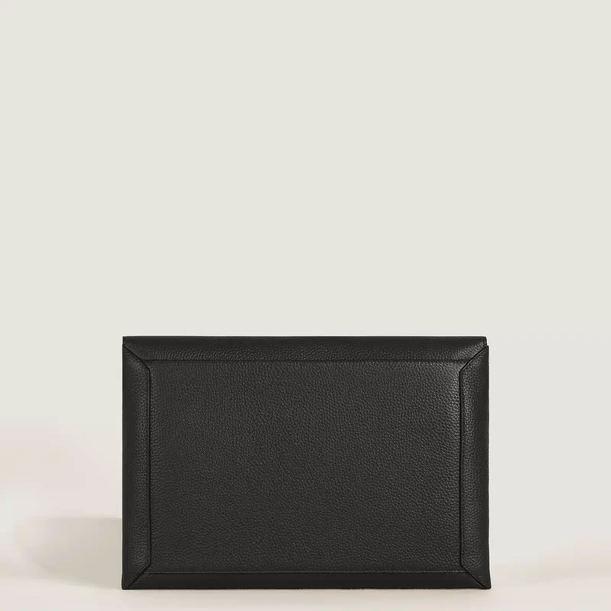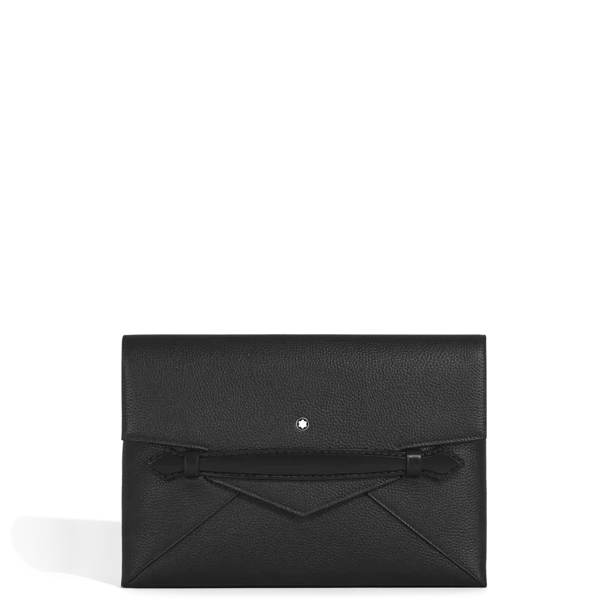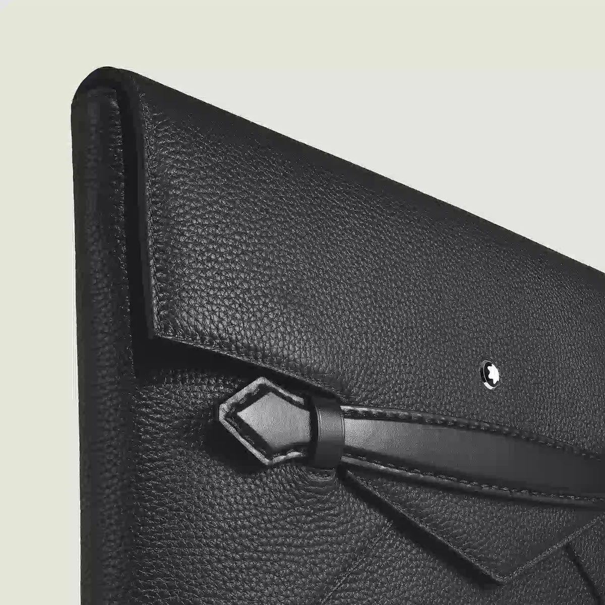 Progettata per chi cerca l’eleganza in ogni aspetto della propria vita, questa cartella portadocumenti è realizzata in pelle di vitello martellata nera. La sua forma elegante ispirata a una busta è impreziosita da una maniglia frontale a forma di pennino, che aggiunge un tocco della tradizione Montblanc al mondo degli accessori moderni. Lo scomparto principale offre una tasca aperta e due passanti per strumenti di scrittura per organizzare il contenuto, mentre la tasca posteriore garantisce un facile accesso agli oggetti essenziali.