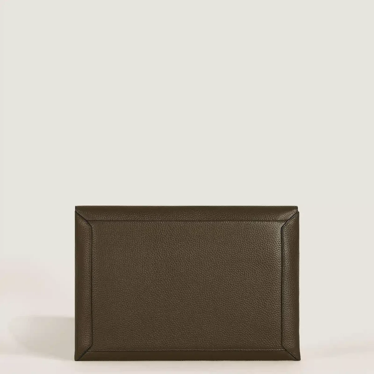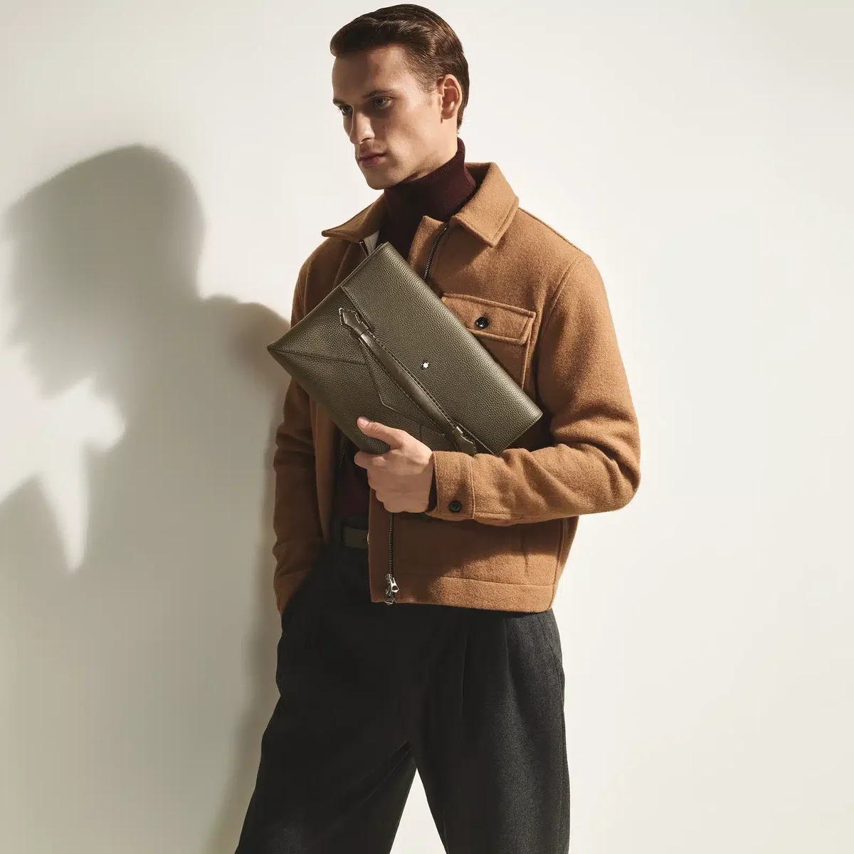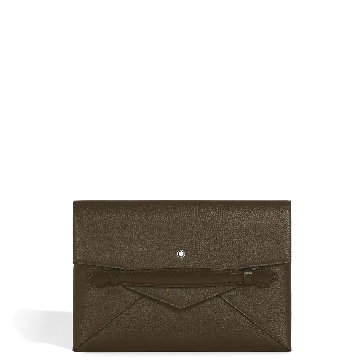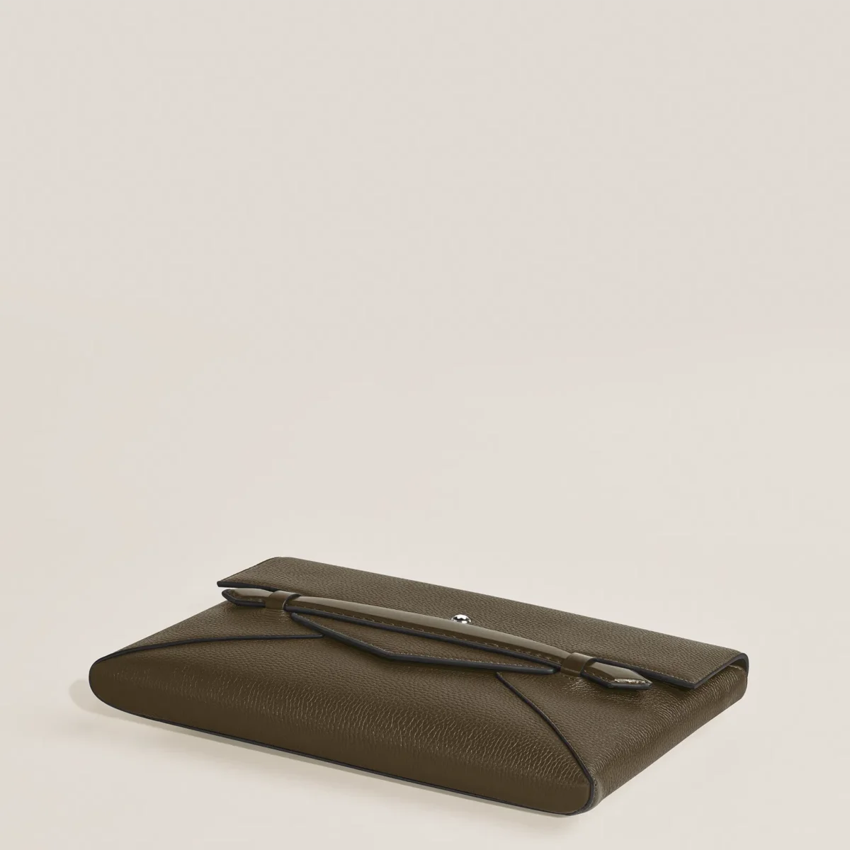 Progettata per chi cerca l’eleganza in ogni aspetto della propria vita, questa cartella porta documenti è realizzata in pelle di vitello martellata color cachi. La sua forma elegante ispirata a una busta è impreziosita da una maniglia frontale a forma di pennino, che aggiunge un tocco della tradizione Montblanc al mondo degli accessori moderni. Lo scomparto principale offre una tasca aperta e due passanti per strumenti di scrittura per organizzare il contenuto, mentre la tasca posteriore garantisce un facile accesso agli oggetti essenziali.