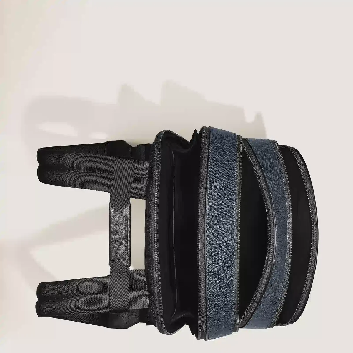 Coniugando praticità e sofisticato stile urbano, questo zaino è il compagno ideale per tutti i giorni. Realizzato in pelle Sartorial goffrata in una raffinata combinazione bicolore di elegante blu e nero, è progettato pensando alla funzionalità. I suoi tre scomparti con cerniera offrono ampio spazio per documenti, dispositivi e strumenti di scrittura, mentre la tasca esterna con cerniera consente un facile accesso ai piccoli oggetti essenziali. Lo scomparto esterno è impreziosito da un audace emblema Montblanc, che aggiunge un tocco distintivo.