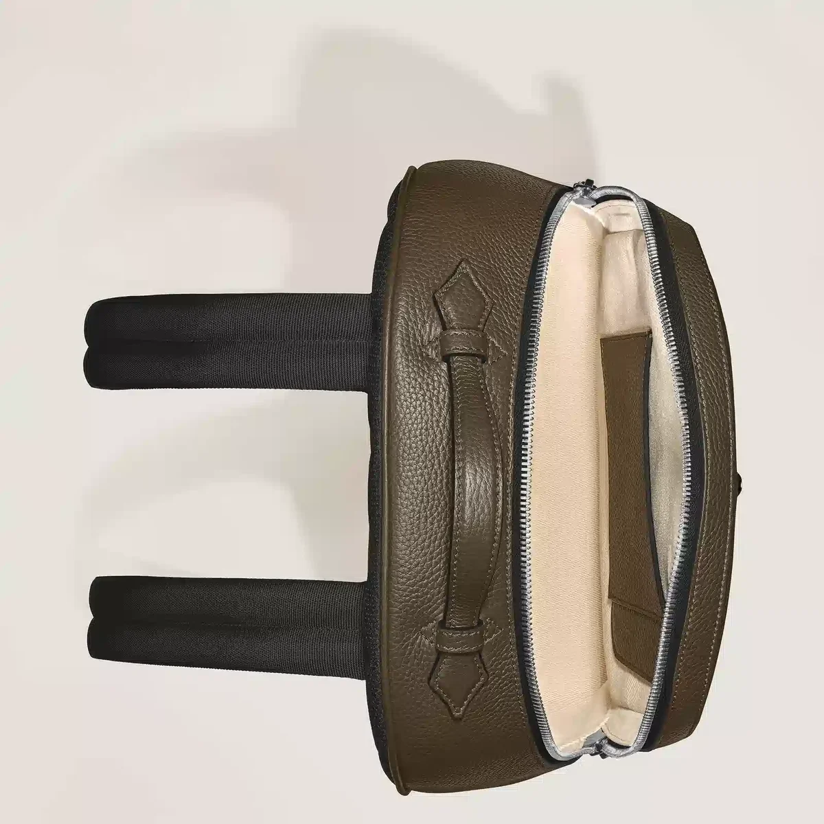 Questo lussuoso zaino in pelle color cachi è un compagno sofisticato per gli spostamenti quotidiani o i brevi viaggi di lavoro. Realizzato con una texture in pelle martellata e forme morbide, presenta anche dettagli distintivi, tra cui cerniere a forma di pennino e cuciture raffinate. Le opzioni di trasporto versatili includono spallacci regolabili e un sistema satellite per un facile aggancio a bagagli più grandi. Lo spazioso scomparto principale è progettato per un’organizzazione perfetta e presenta uno scomparto imbottito per laptop fino a 13″, una tasca aperta e un passante per penne per tenere a portata di mano gli oggetti essenziali più piccoli.