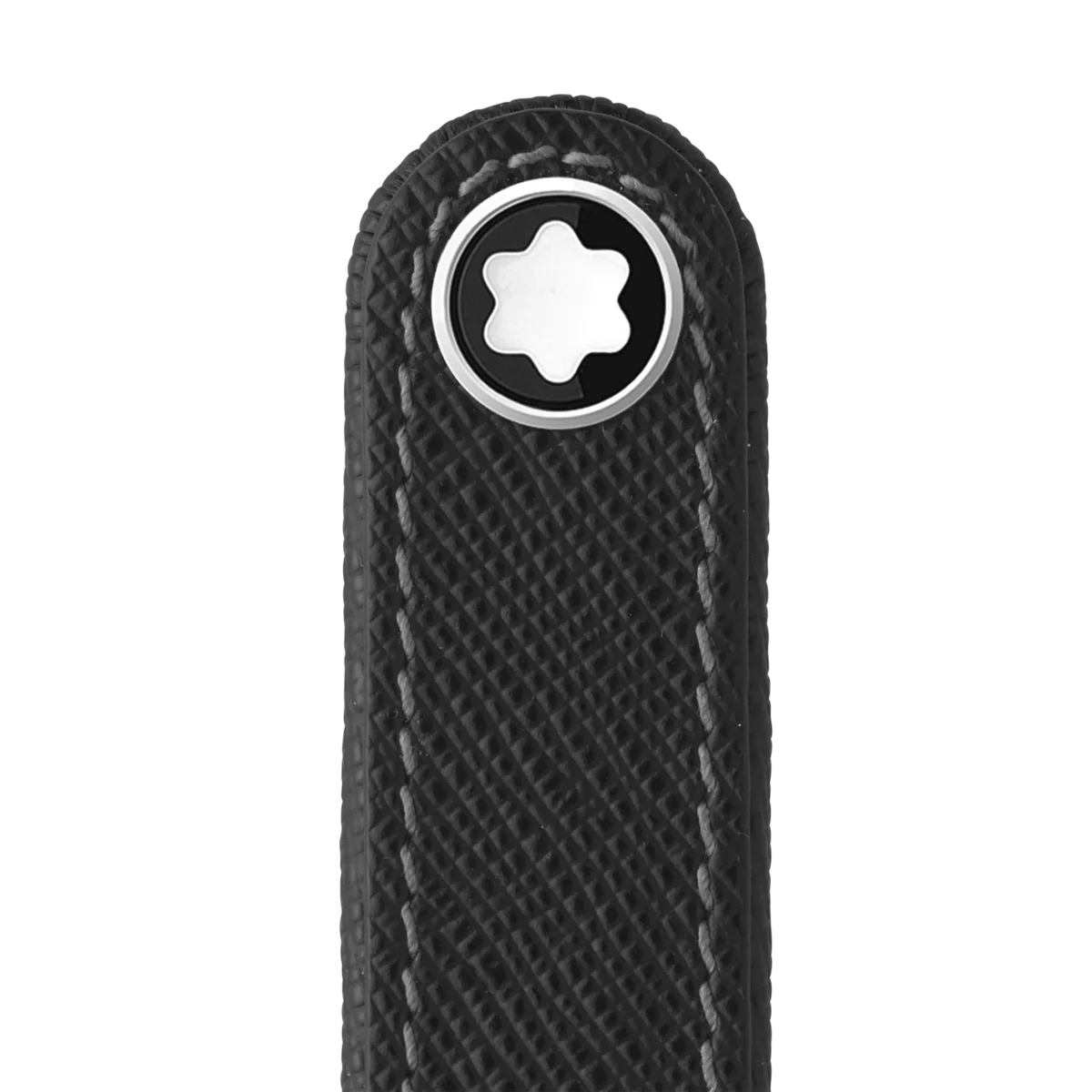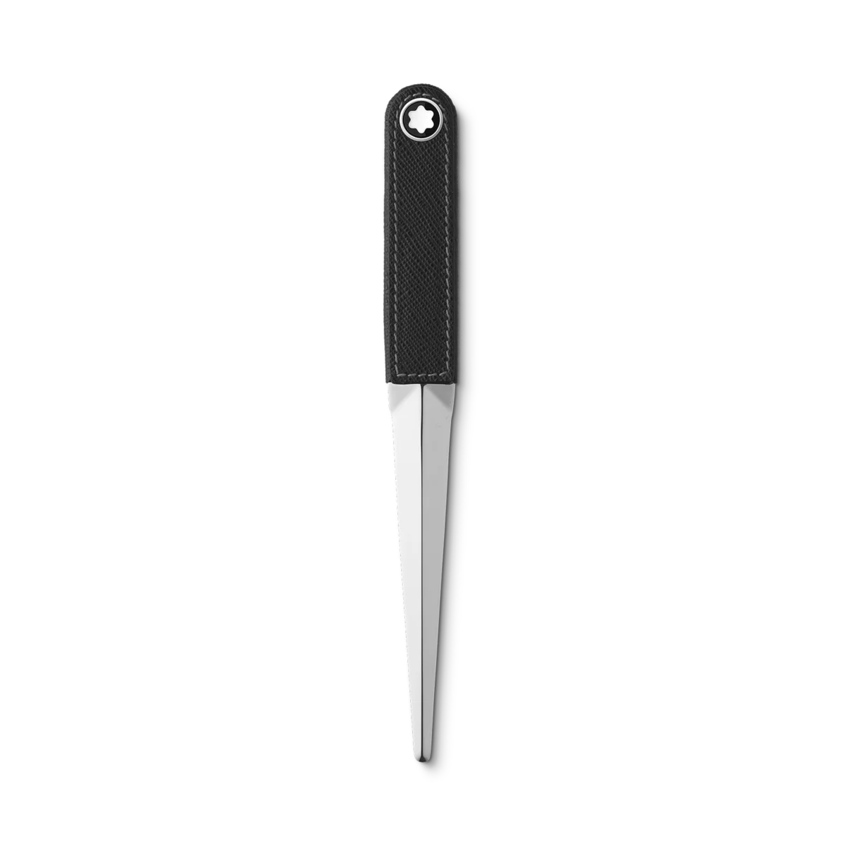 Tagliacarte Montblanc in acciaio, placcato in rutenio con intarsi in morbida pelle nera.