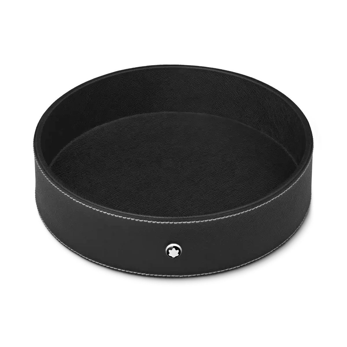 Scopri tutti i dettagli del vassoio da scrivania rotondo in pelle nera (grande). Acquista online sul negozio ufficiale Montblanc.