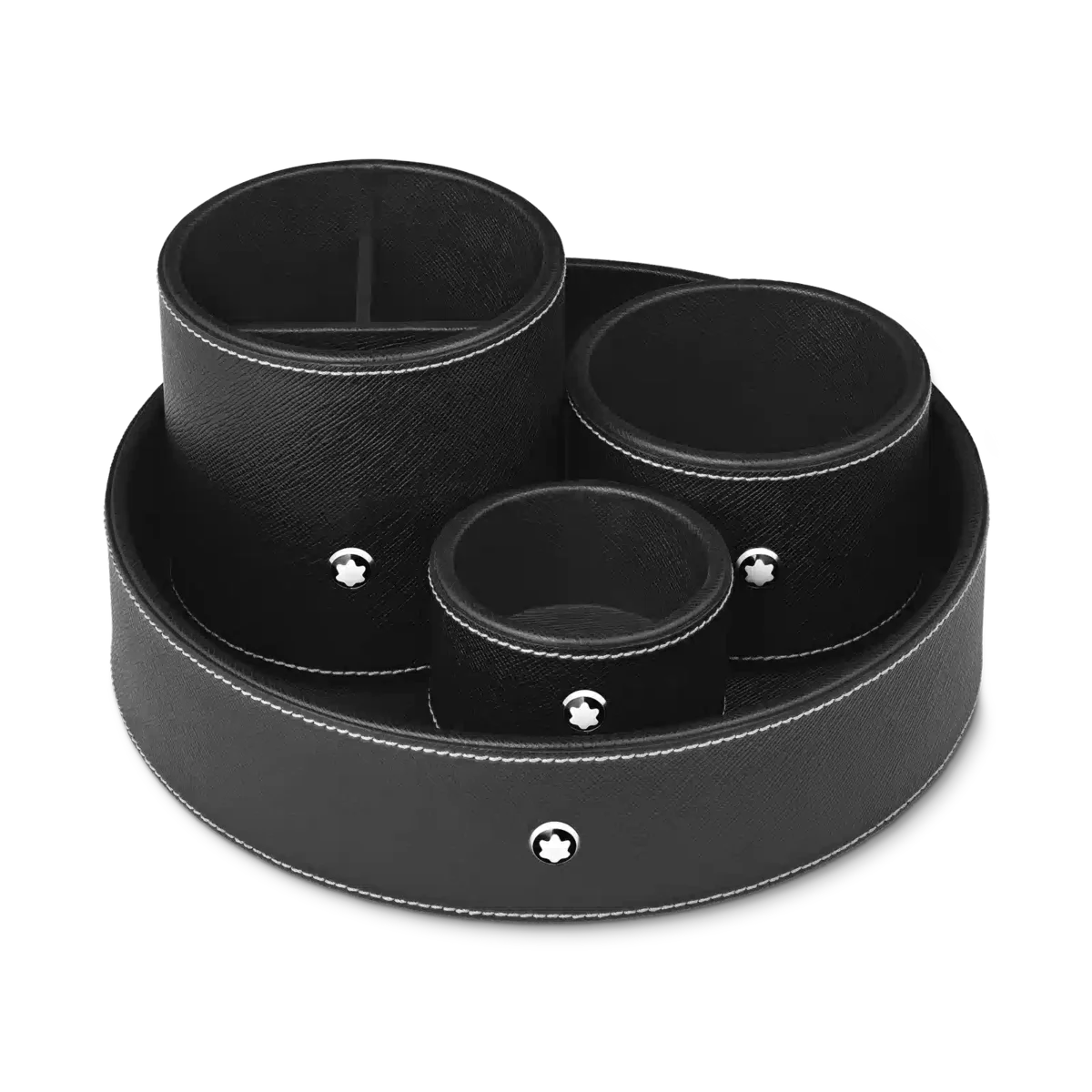 Scopri tutti i dettagli del vassoio da scrivania rotondo in pelle nera (piccolo). Acquista online sul negozio ufficiale Montblanc.