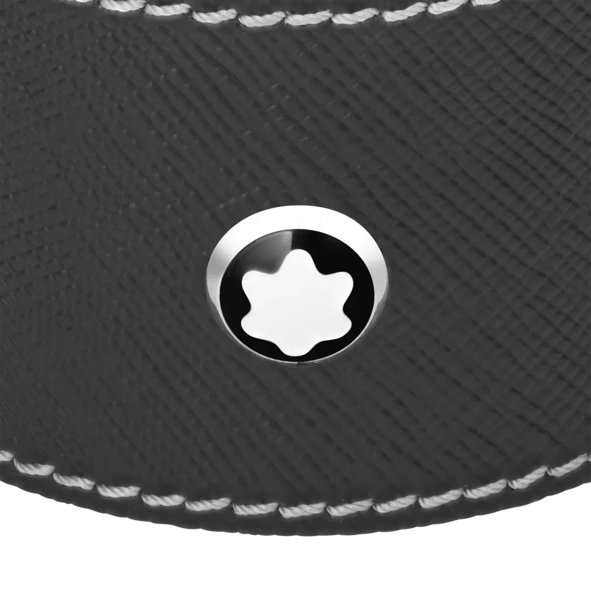 Vassoio da scrivania rotondo piccolo in pelle nera con dettaglio emblema Montblanc.