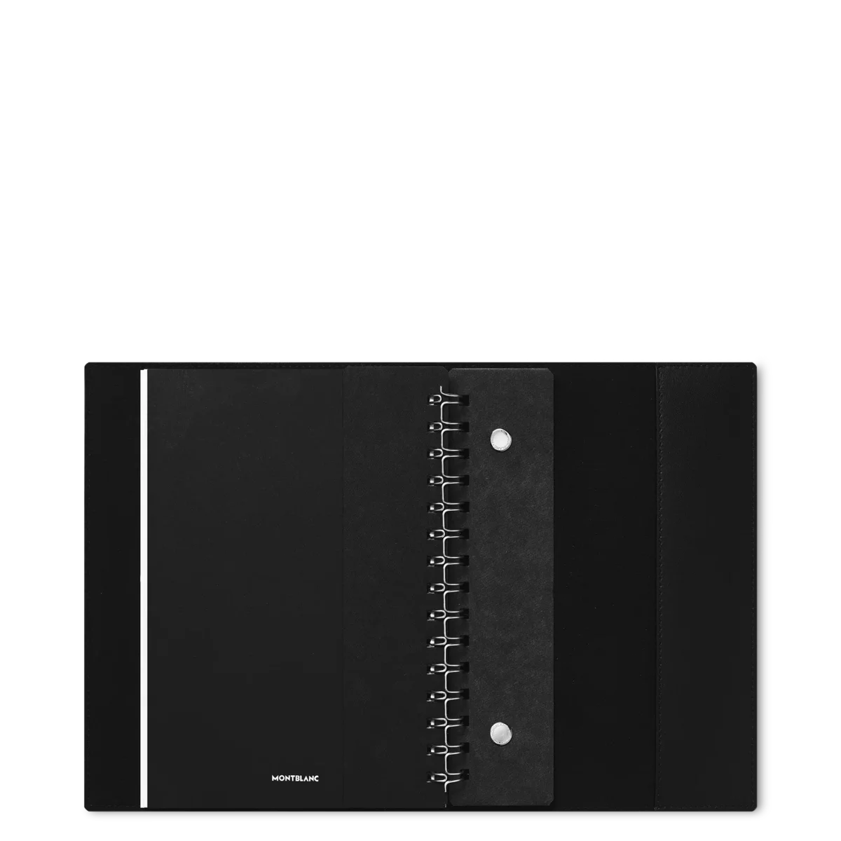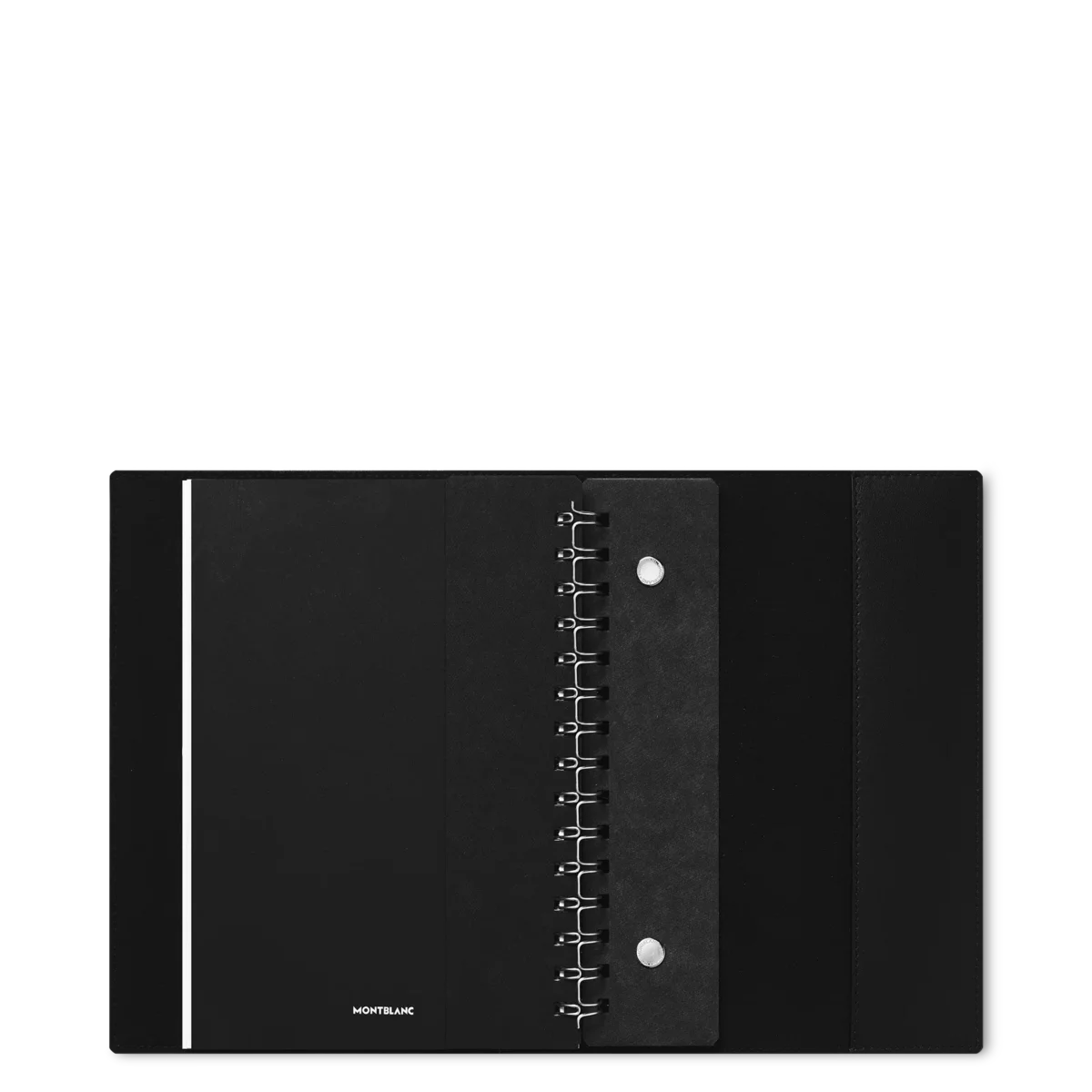 Taccuino Meisterstück Selection Soft Envelope nero. In omaggio al mondo della scrittura, la struttura contemporanea di questo accessorio ricorda la forma di una busta. Questa custodia in pelle è dotata di due tasche per riporre oggetti di piccole dimensioni. La texture morbida della pelle e l’emblema Montblanc sulla chiusura a patta aggiungono un tocco di raffinatezza. Il taccuino Envelope è dotato di ricarica a righe n. 146, fissata con bottoni a pressione. Dimensioni 160 x 210 mm. Prodotto in Italia.