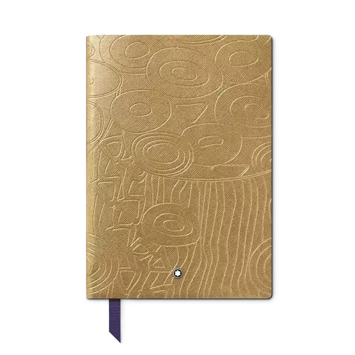 Notebook #146 piccolo, Masters of Art Omaggio a Gustav Klimt, colore oro – rigato. Realizzato in pelle con stampa saffiano e motivo goffrato ispirato all’arte di Klimt. Prodotto in Italia. 96 fogli / 192 pagine. Dimensioni 150 x 210 mm.