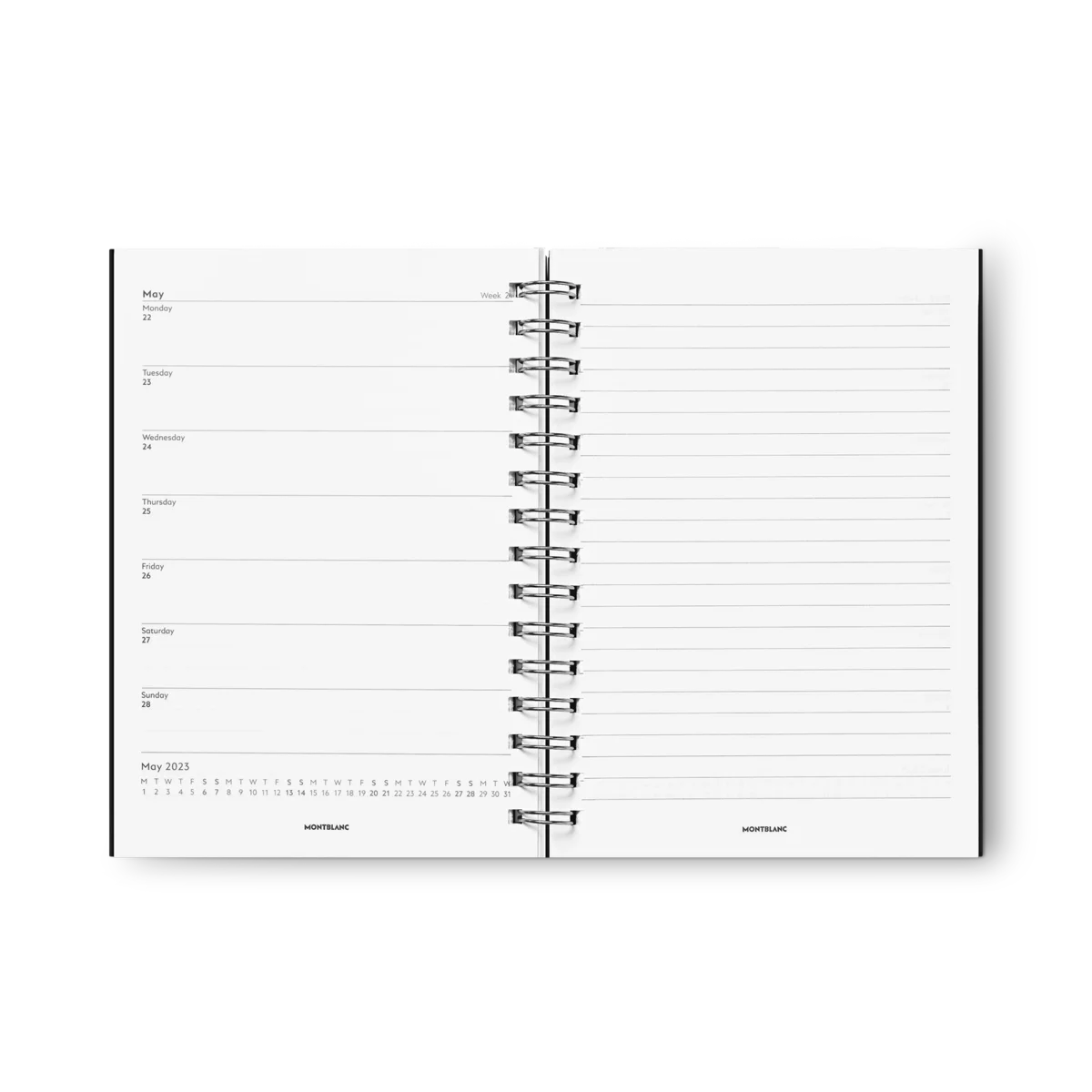 Ricarica per taccuino Envelope #146 piccola, nera – Calendario 18 mesi. Calendario a spirale 18 mesi, da settembre 2024 a febbraio 2026. Ricarica da fissare con bottoni a pressione all’interno del taccuino Montblanc Sartorial Envelope. Dimensioni 150 x 210 mm. Prodotto in Italia.
