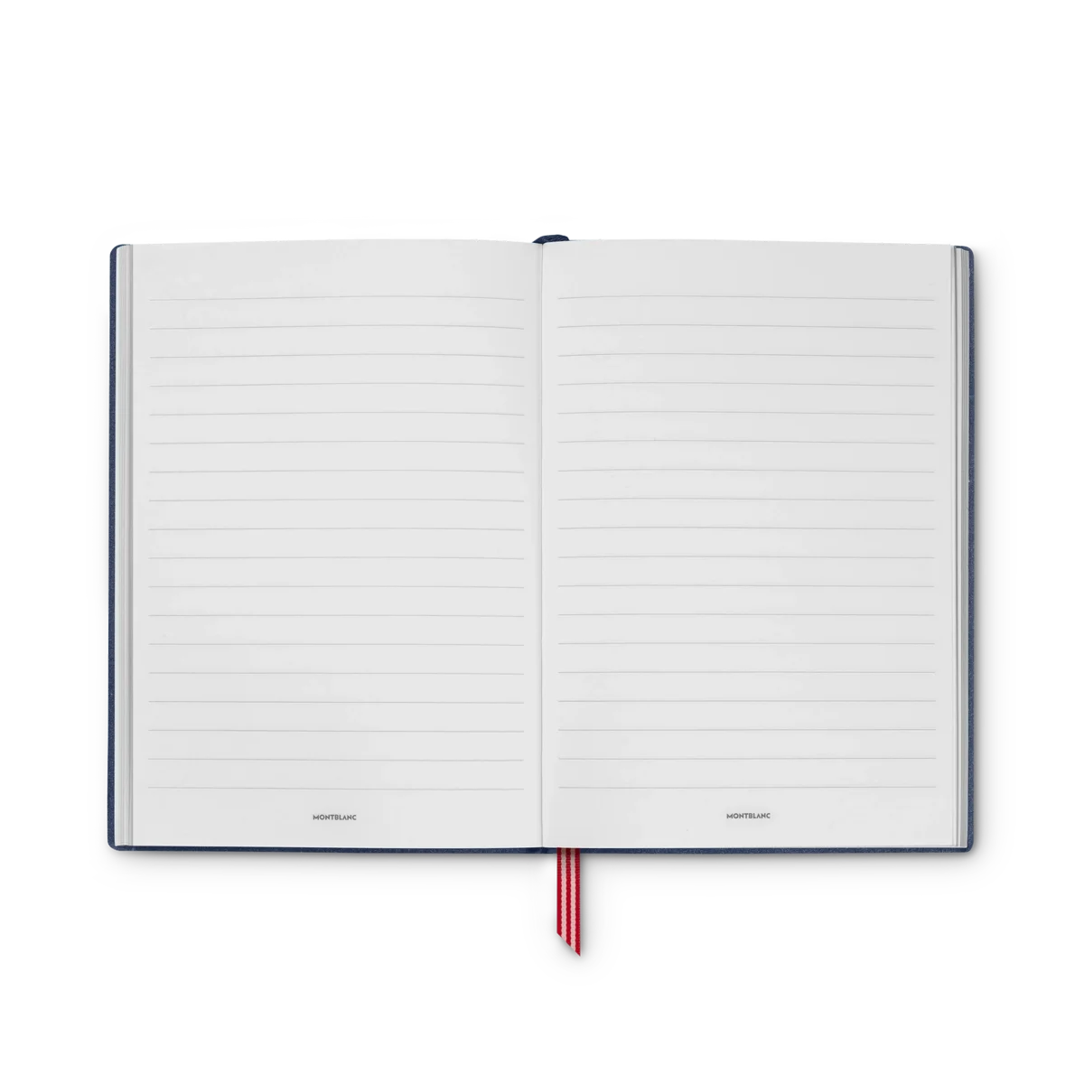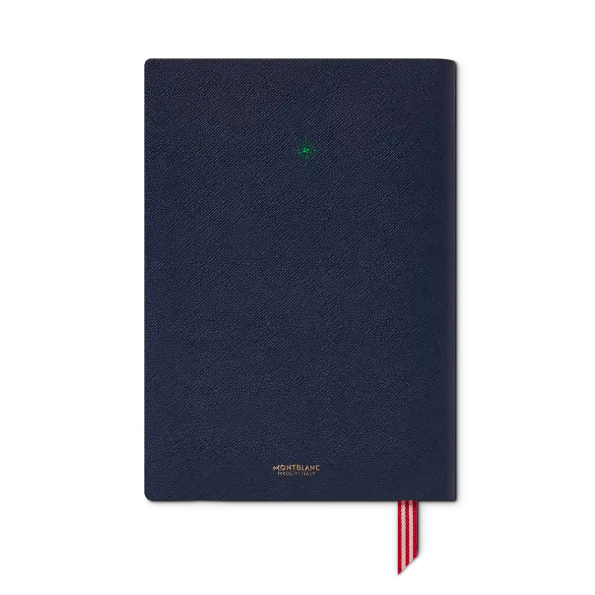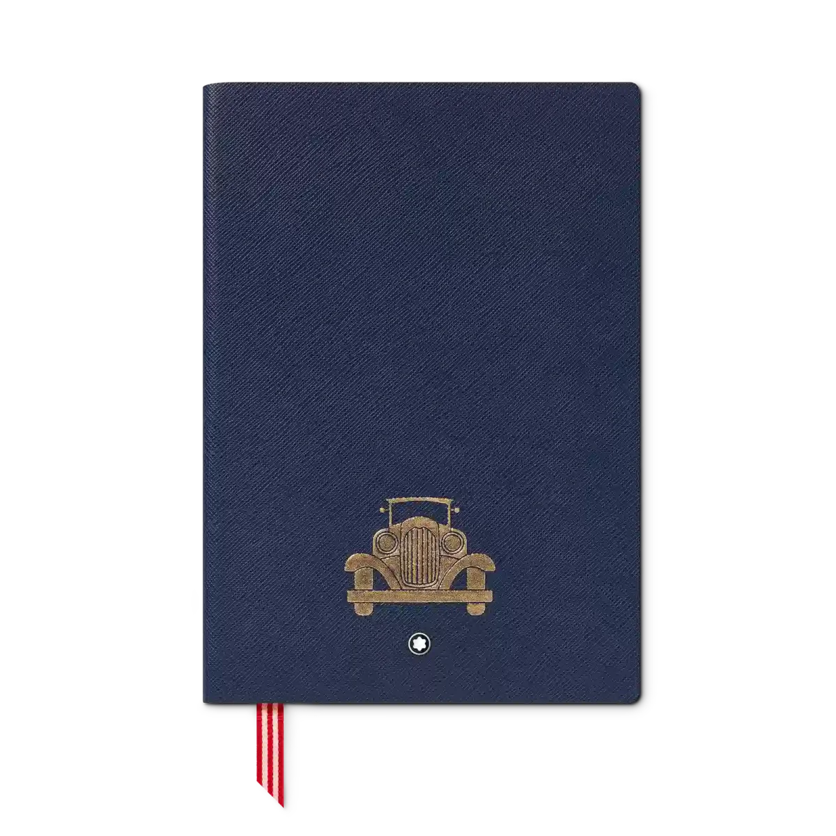 Taccuino Montblanc n. 146 – Piccolo, collezione Great Characters Omaggio a Il grande Gatsby, realizzato in pelle blu con stampa e motivo a carrozze dorate. Prodotto in Italia. 96 fogli / 192 pagine. Dimensioni 150 x 210 mm.