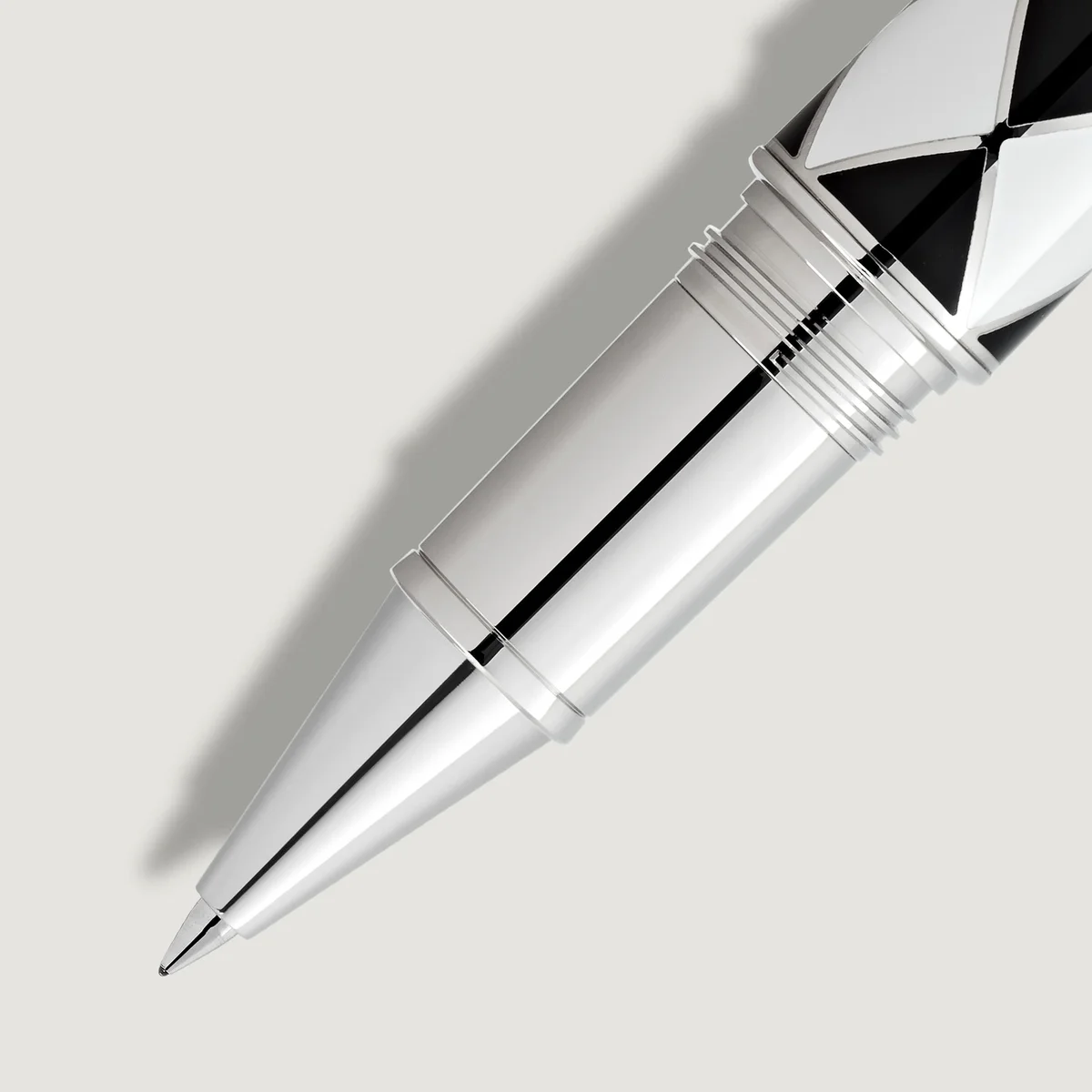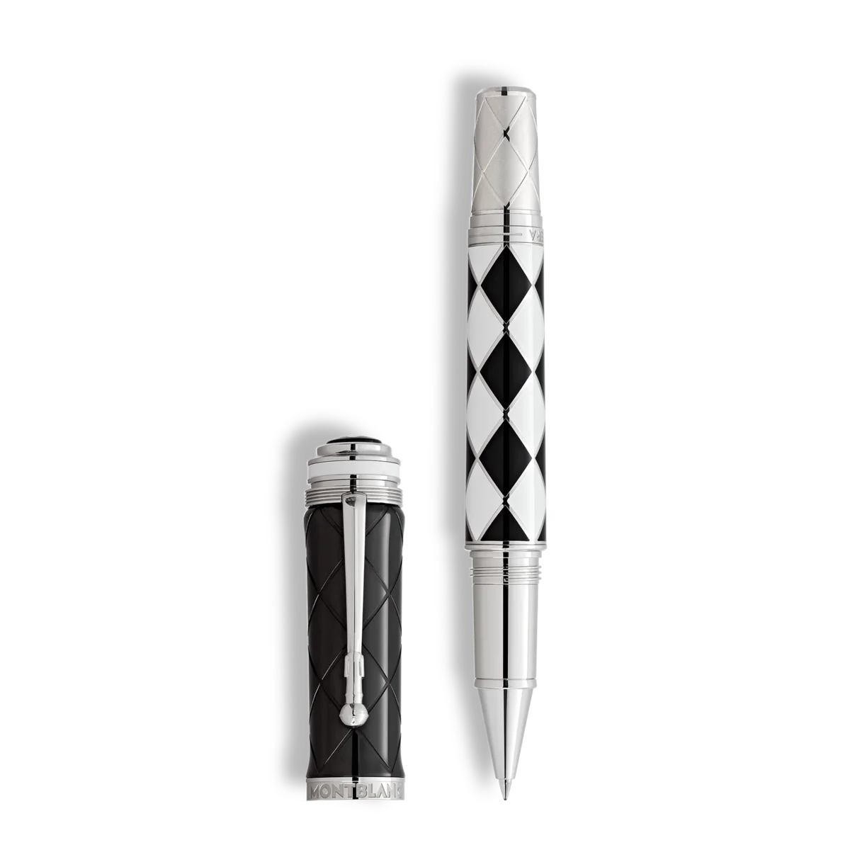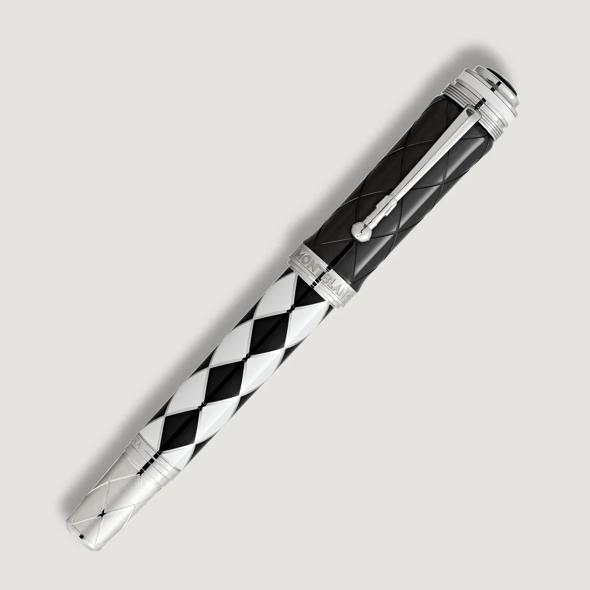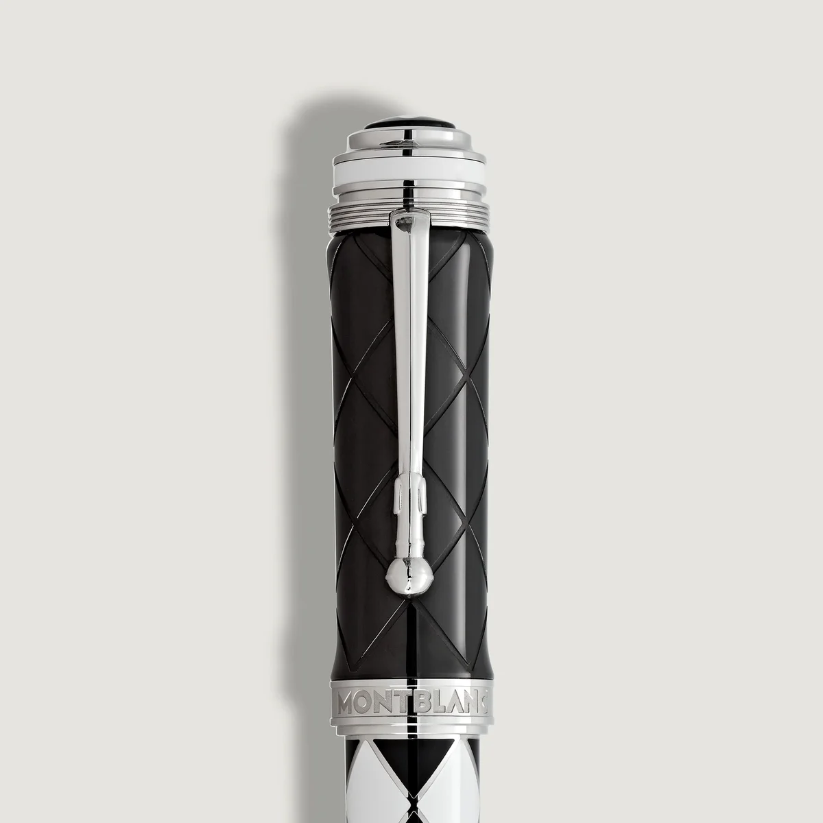 Nella ricca storia della musica rock pochi nomi hanno brillato con tanta costanza come quello dei Queen. Con una carriera che abbraccia oltre cinque decenni, la band è una delle più famose di tutti i tempi. Durante questo periodo, i Queen sono diventati l’incarnazione della creatività musicale e la maggior parte delle loro canzoni ha dominato le classifiche per settimane. Hanno creato qualcosa di simile al loro universo musicale, composto da una combinazione di hard rock, glam rock, pop, funk e opera, abbattendo i confini tra i generi. Montblanc dedica la sua Great Characters Homage to Queen Limited Edition 1975 a queste icone della musica rock, ispirandosi all’album A Night At The Opera. Bianco e nero. Nessun’altra combinazione di colori descrive un contrasto così netto e nessun’altra potrebbe simboleggiare meglio la vastità dell’universo musicale dei Queen. Per un certo periodo, The Black and the White è stato persino preso in considerazione come titolo del loro secondo album in studio ed è stato il motto della spettacolare festa di compleanno di Mercury undici anni dopo. Anche la Limited Edition 1975 appare in questa veste contrastante. Il quarto album in studio della band, tuttavia, ha superato tutto ciò che era stato fatto prima ed è considerato l’album più elaborato del XX secolo. I quattro artisti che vi hanno suonato sono passati alla storia: Freddy Mercury, il carismatico frontman con un’estensione vocale di diverse ottave e un ricco vibrato; Brian May, il virtuoso chitarrista dal suono inconfondibile; John Deacon, il bassista altamente creativo; e Roger Taylor, il cuore ritmico della band. In omaggio a questi quattro musicisti eccezionali, i loro ritratti stilizzati sono immortalati sul cappuccio nero dello strumento di scrittura, basato sulla grafica delle iconiche copertine di Queen II e Hot Space. L’album A Night at the Opera – e in particolare il suo pezzo forte Bohemian Rhapsody – esemplifica il sogno di Freddie Mercury di creare un disco di proporzioni epiche. Il singolo, della durata di sei minuti, presenta un arrangiamento stravagante che combina ballate al pianoforte, opera e rock, intervallate da strati su strati di voci operistiche e cascate vocali e riferimenti eccentrici a personaggi come Galileo o Scaramouche, una figura della Commedia dell’Arte. Lo stesso Mercury, noto per i suoi costumi di scena sgargianti, spesso indossava le vesti di un altro personaggio della Commedia dell’Arte, Arlecchino. La sua famosa tuta aderente con motivo a rombi bianchi e neri sottolineava la sua personalità scenica non convenzionale e ha ispirato il design romboidale del cono. L’edizione rende omaggio anche a Brian May e al suo straordinario modo di suonare la chitarra, fondamentale per il sound dell’album, conferendo al cono rivestito in platino il suo aspetto distintivo. Questo ricorda le manopole di controllo del volume e del tono della famosa chitarra elettrica di May. L’anello del cono è impresso con il nome dell’album: A Night at the Opera. L’anno della sua uscita, il 1975, ha ispirato la decisione di limitare l’edizione a 1975 penne stilografiche e 1975 roller. La corona indossata da Mercury durante l’esecuzione finale di God Save The Queen è stata l’ispirazione alla base della silhouette del cappuccio della Limited Edition ed è allo stesso tempo una metafora del carattere maestoso della band e della sua eredità musicale. La clip rivestita in platino è stata progettata per assomigliare a un’asta microfonica, in riferimento a uno dei tratti distintivi delle esibizioni dal vivo di Freddie Mercury. Identificativo n. MB131969 Peso fisico 90,11 g Dimensioni 144,9 mm * 17,8 mm