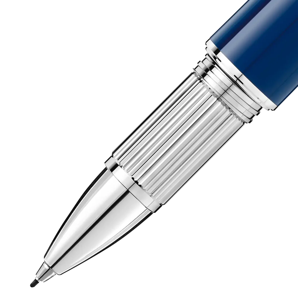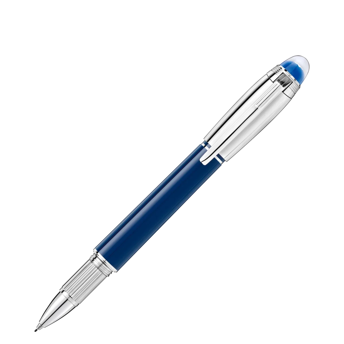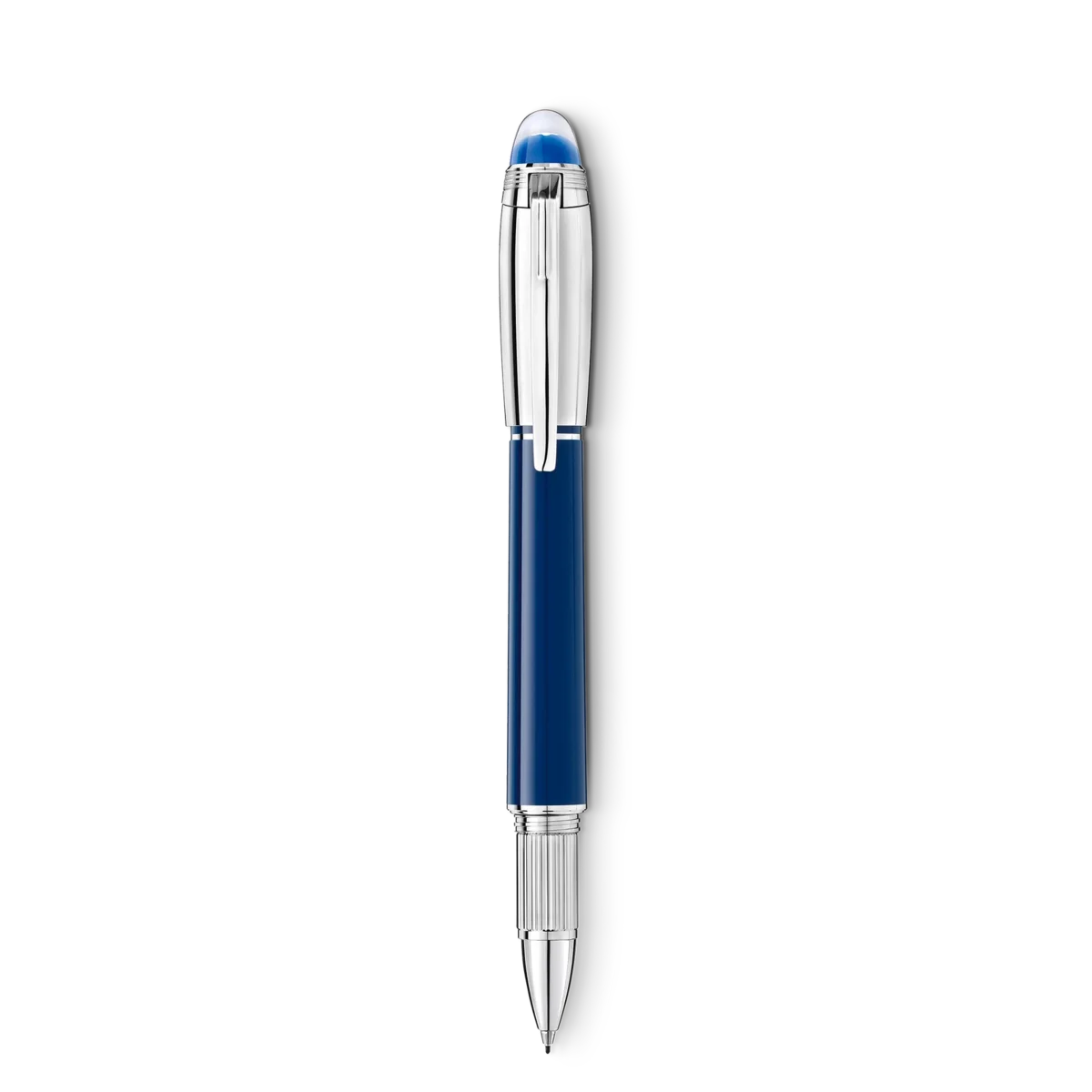 StarWalker Blue Planet racconta il viaggio tra le stelle, l’esplorazione del cosmo e delle galassie lontane, e la partecipazione a una delle avventure più misteriose e potenti che l’umanità abbia mai intrapreso: l’esplorazione spaziale. Ingrandendo il nostro pianeta Terra, traiamo ispirazione dall’acqua, fonte di vita. La tecnologia dell’emblema StarWalker presenta una cupola blu traslucida con una stella che galleggia sulla sommità, che rappresenta la Terra che emerge sopra l’orizzonte lunare vista dalla luna. La StarWalker Blue Planet Doué Fineliner è dotata di cappuccio e finiture rivestiti in platino e corpo in resina preziosa blu.