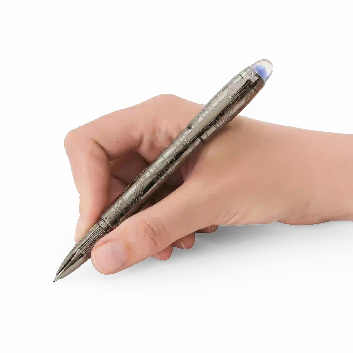 StarWalker SpaceBlue guarda oltre il pianeta Terra e si rivolge alle stelle e alla galassia. Questa nuova collezione StarWalker conferisce un nuovo look al cappuccio e al fusto in metallo, con un design che richiama le intricate strutture del motivo Widmanstätten, una delle creazioni più ipnotiche della natura. Tutte le parti metalliche sono rivestite in rutenio scuro, accompagnate da un sottodomo blu spazio profondo sulla parte superiore del cappuccio, che ricorda le tonalità di un cielo stellato, su cui fluttua l’emblema Montblanc.